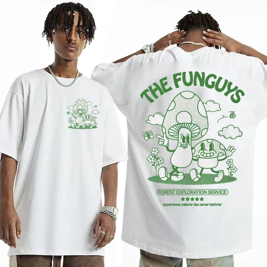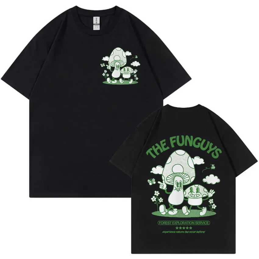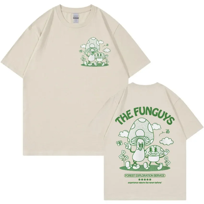 THE FUNGUYS Funny Shroom T-shirts Unisex Mushroom Retro Cartoon T-shirt Men Fashion O-Neck Humor Short
