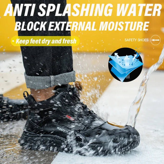 Outdoor Waterproof Safety Shoes Security Steel Toe Cap Men's Boots Working Steel Toe Anti-Smashing Men's Work Boots Size 47