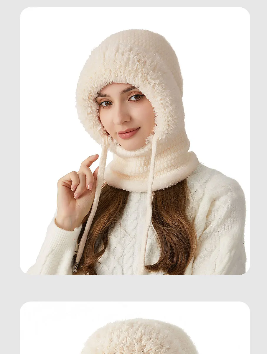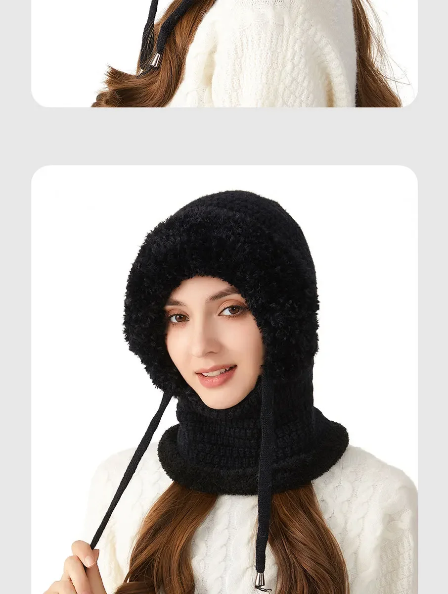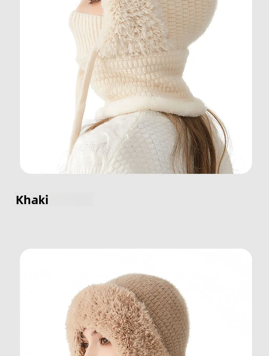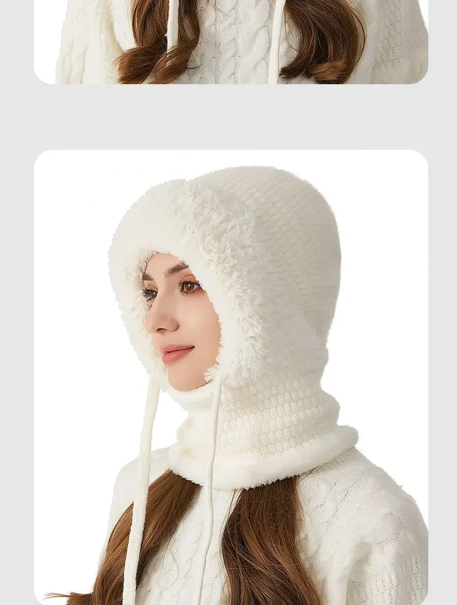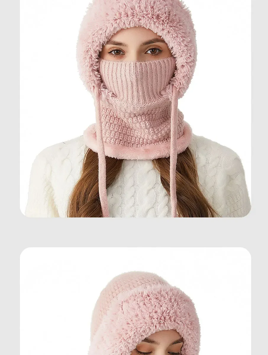 Thermal Knitted Balaclava Hood With Face Mask And Scarf For Women Winter Cycling Outdoor Activities Windproof Ear Warm Hat