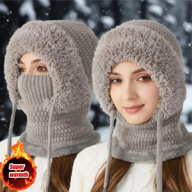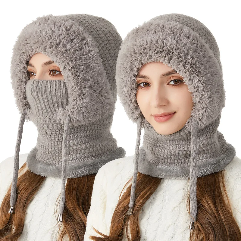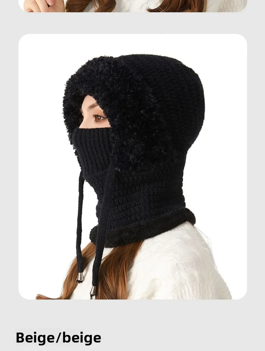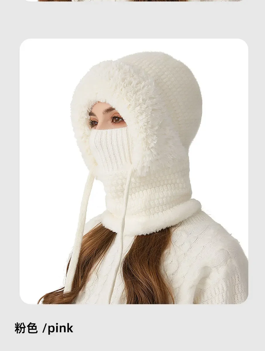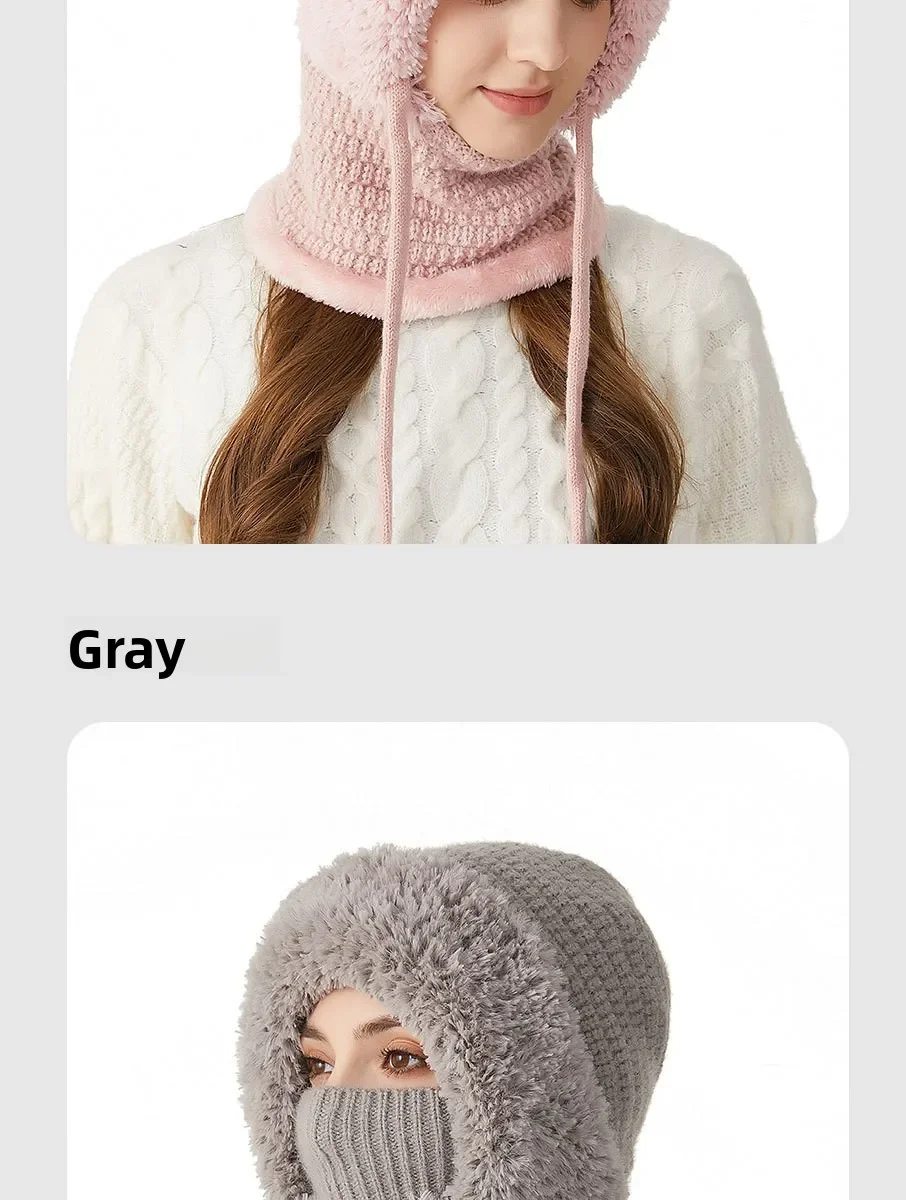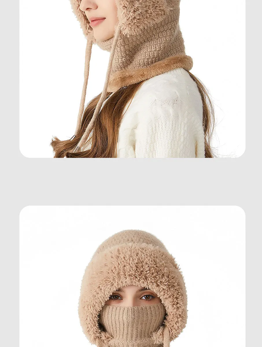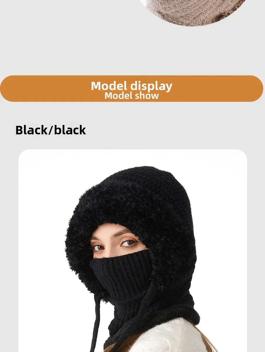 Thermal Knitted Balaclava Hood With Face Mask And Scarf For Women Winter Cycling Outdoor Activities Windproof Ear Warm Hat