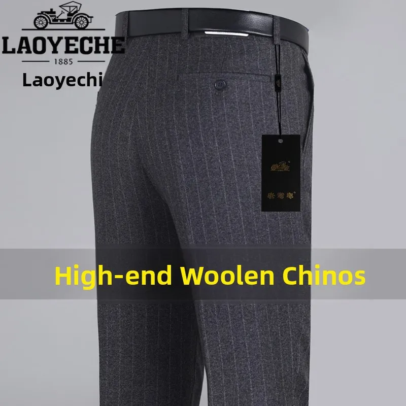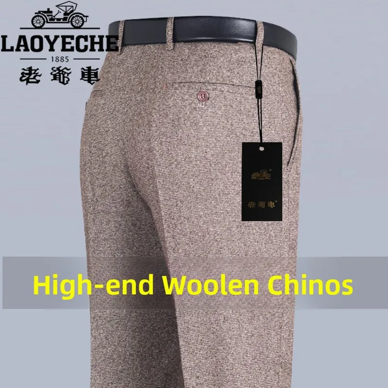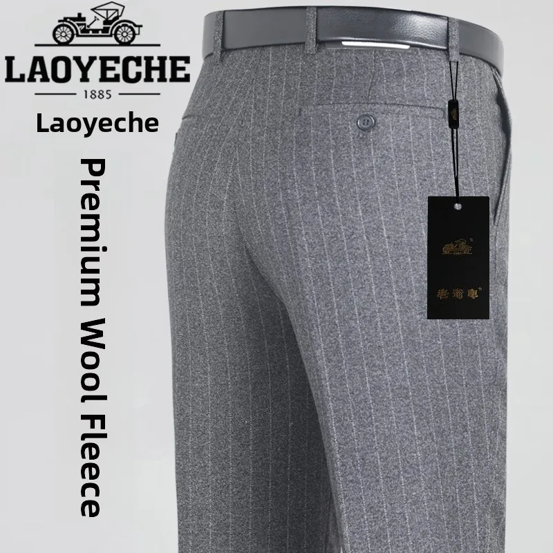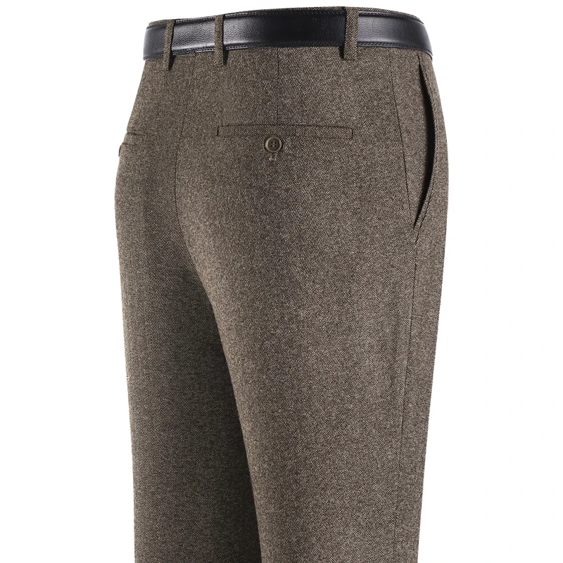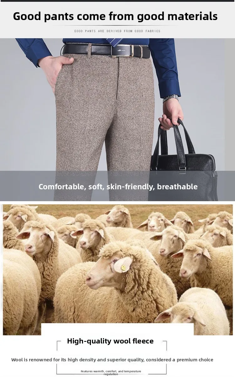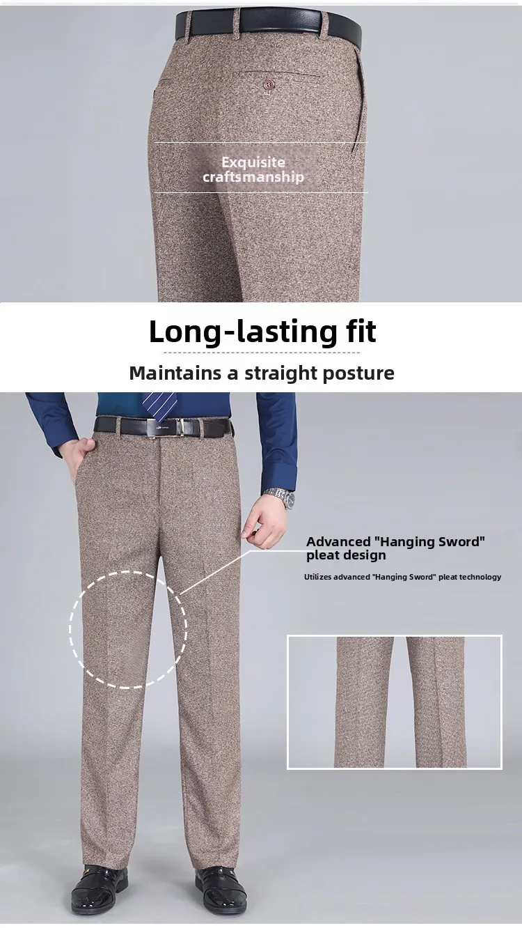 Thi Woolen Velvet Men’s Busin Casual Straight Leg Pants Anti-Wrinkle Iron-Free Autumn Winter Long