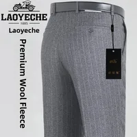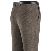 Thi Woolen Velvet Men's Busin Casual Straight Leg Pants Anti-Wrinkle Iron-Free Autumn Winter Long Trousers