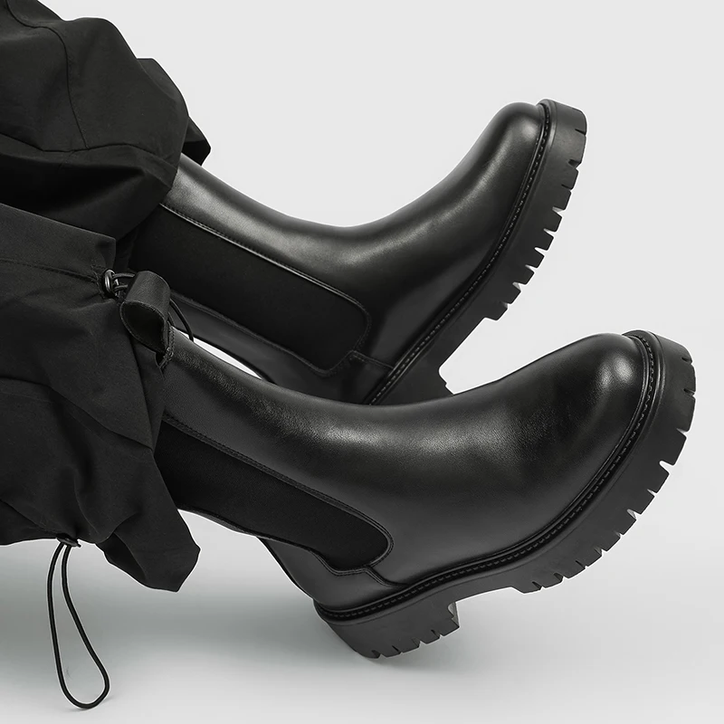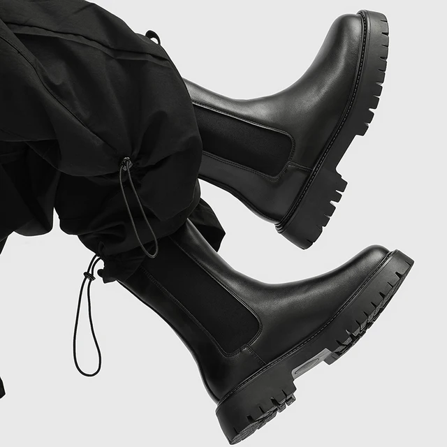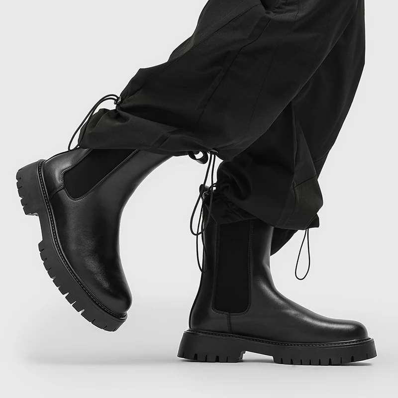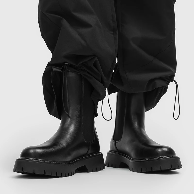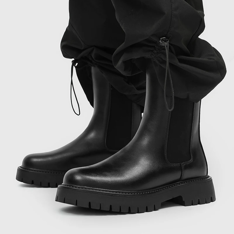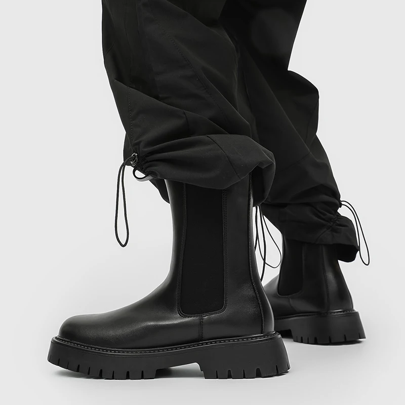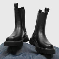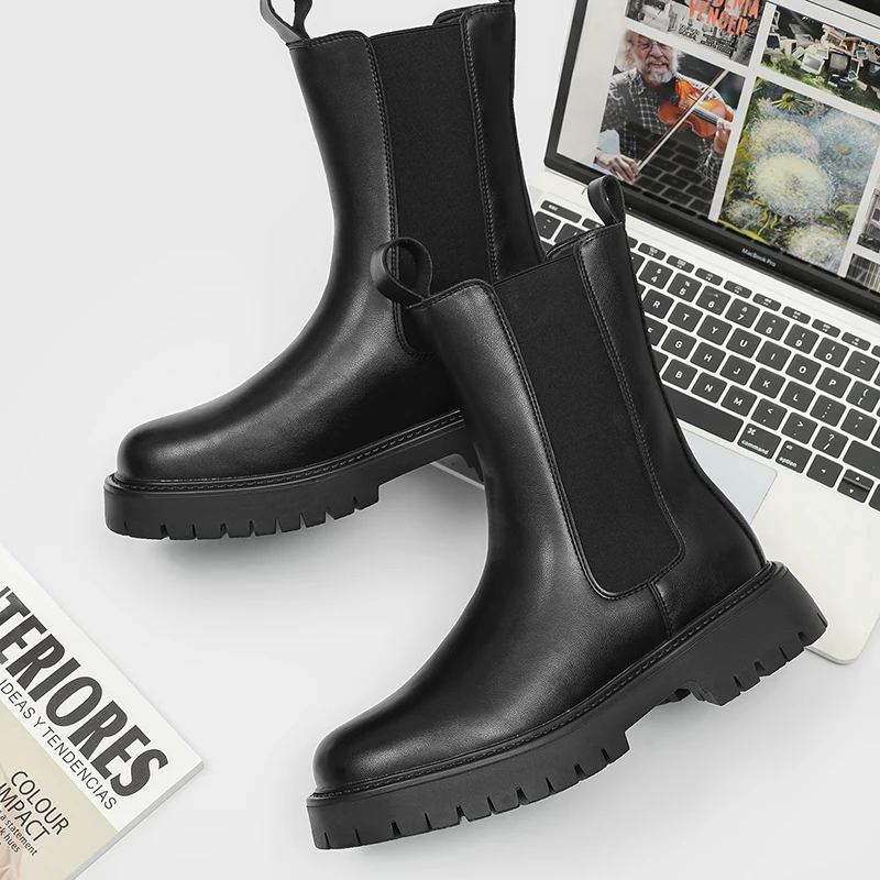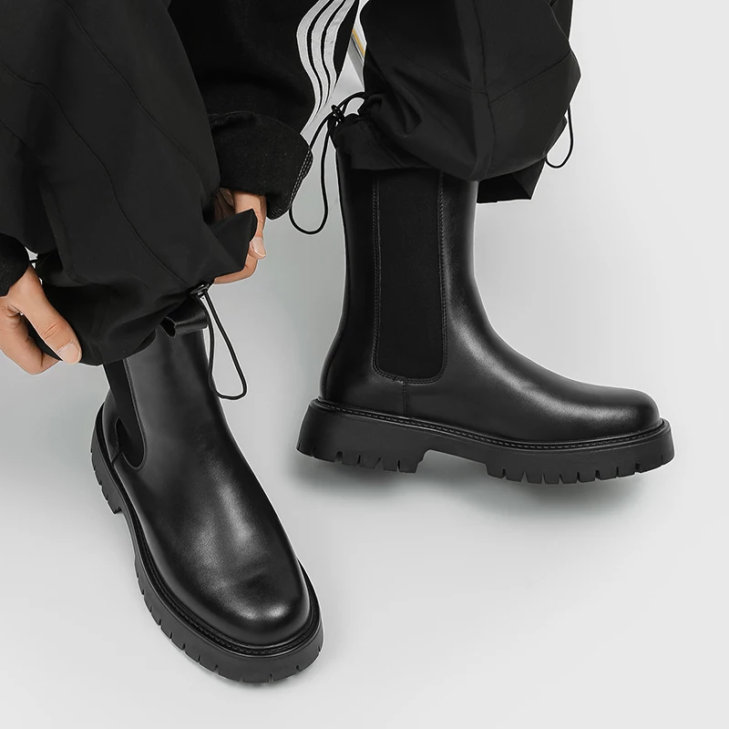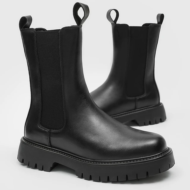 Thick Bottom High Top Men Shoes Leather Fashion Ankle Boots Classic Chelsea Boots Casual Business Walking
