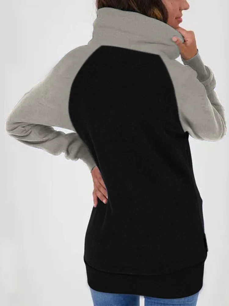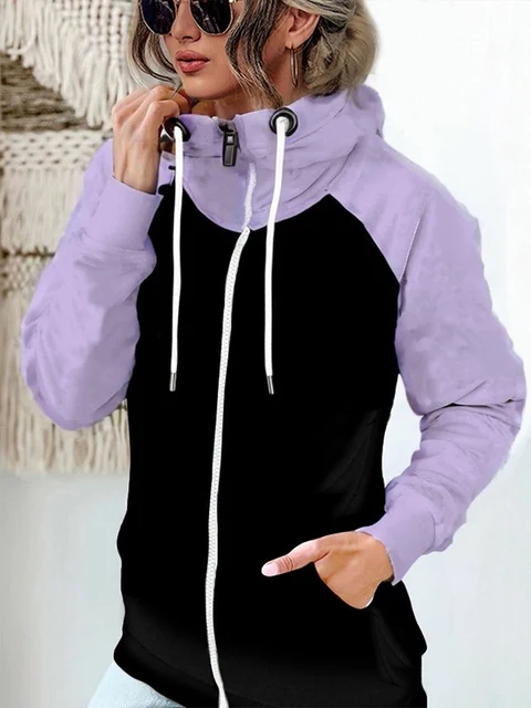 Thick Thermal Patchwork Woman Hooded Pockets Winter Plus Size Contrast Color Zipper Hooded Women's Hoodie Drawstring Lady Coats