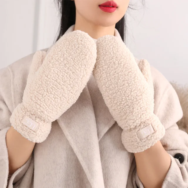 Thick Warm Plush Lamb Wool Gloves Women Winter Faux Fur Gloves Outdoor Guantes Driving Glove Sports Mittens