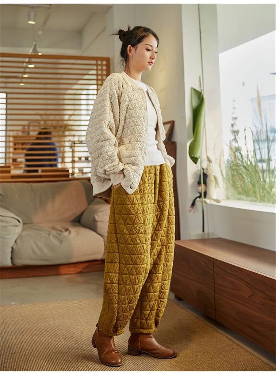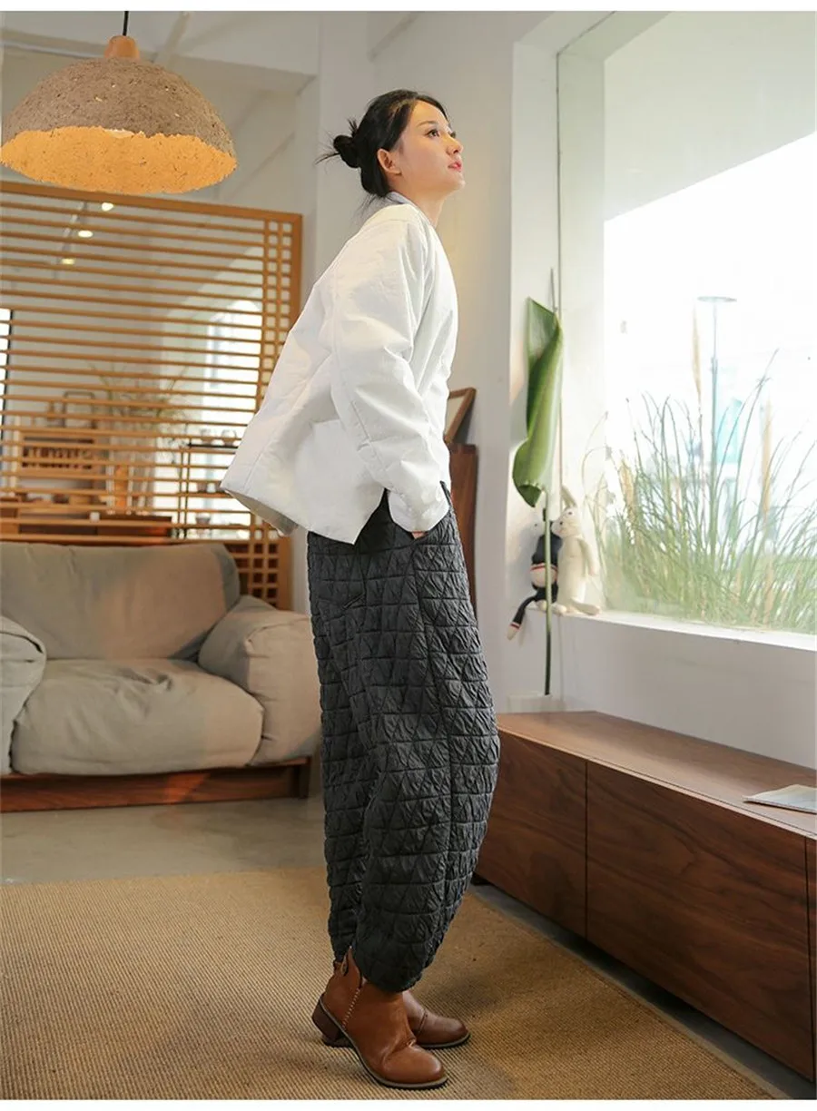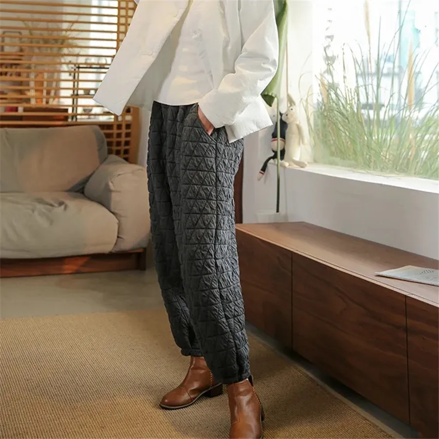 Thicken Warm Quilted Cotton Bloomers Pants Casual Winter Baggy Womens Pantalones High Waist Oversized