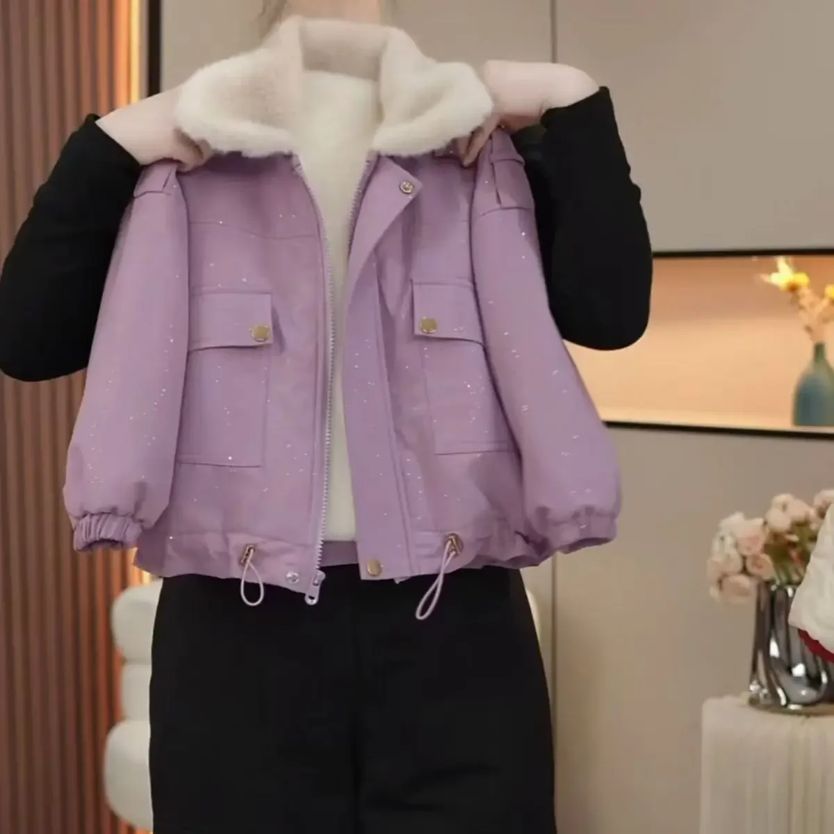 • Thickened Purple Cotton-Padded Coat : The thickened purple cotton-padded coat offers extra warmth and comfort during cold weather.