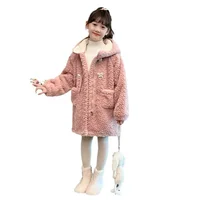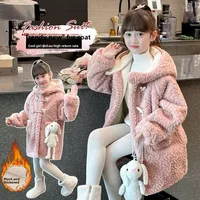 Thickened Fleece Cotton Jacket for Girls Mid-Length Hooded Winter Coat Children's Fashionable Outerwear Casual Style