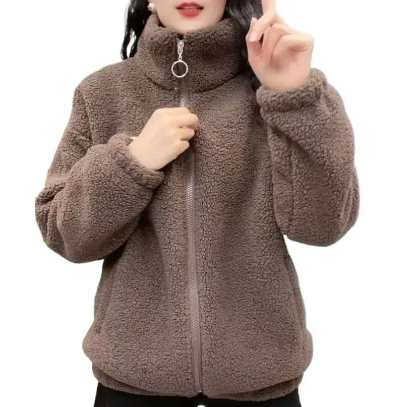 Thickened Fleece Jacket Winter Warm Cotton Clothes Anti-Aging Women's Clothing Loose Slimming Top for Mom 20-60 Years Old