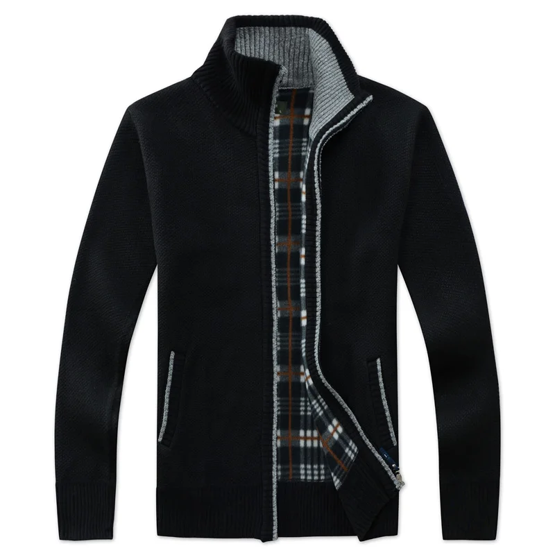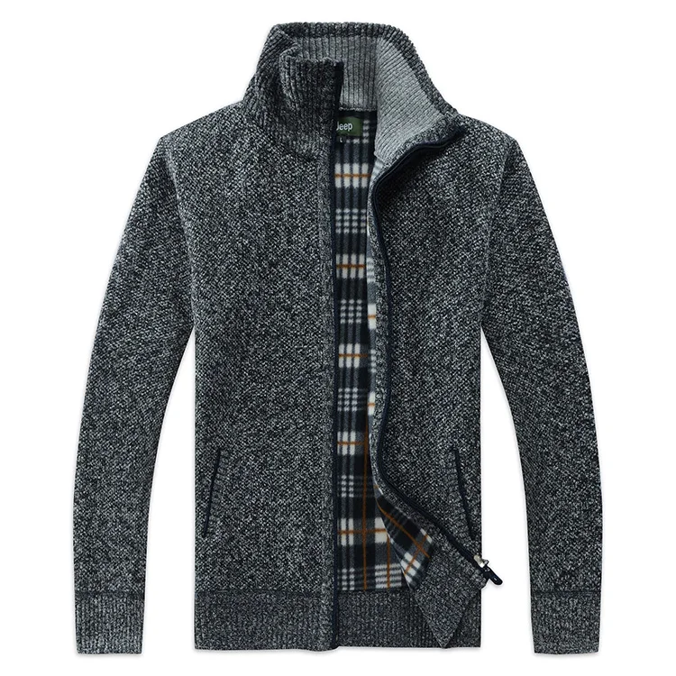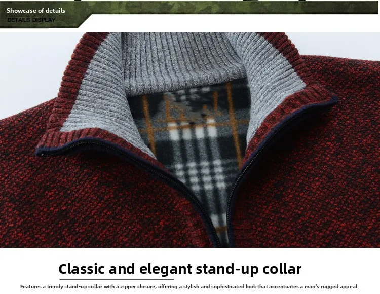 The sweater features a thickened fleece lining, providing extra warmth and comfort during the colder months.