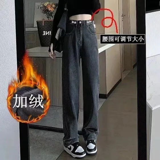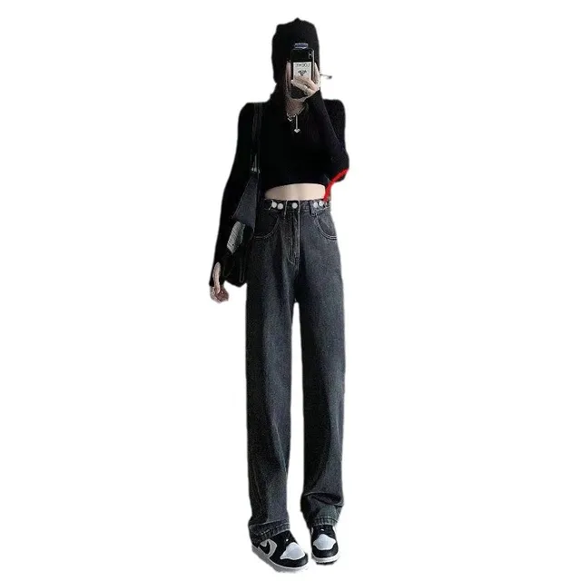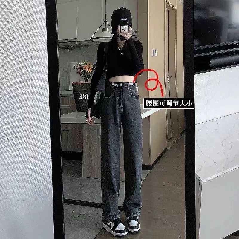 Retro American Dog Patchwork Embroidered Wide Leg Straight Jeans High Waist Loose Long Pants Autumn New Style Casual Chic