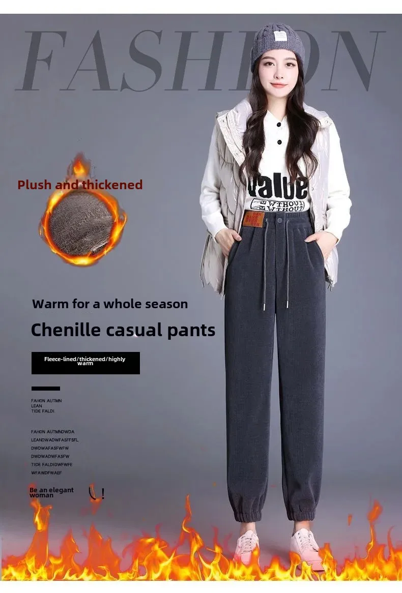• Chenille Fleece Lining : Experience ultimate comfort with our Chenille fleece-lined pants, perfect for the fall/winter season.