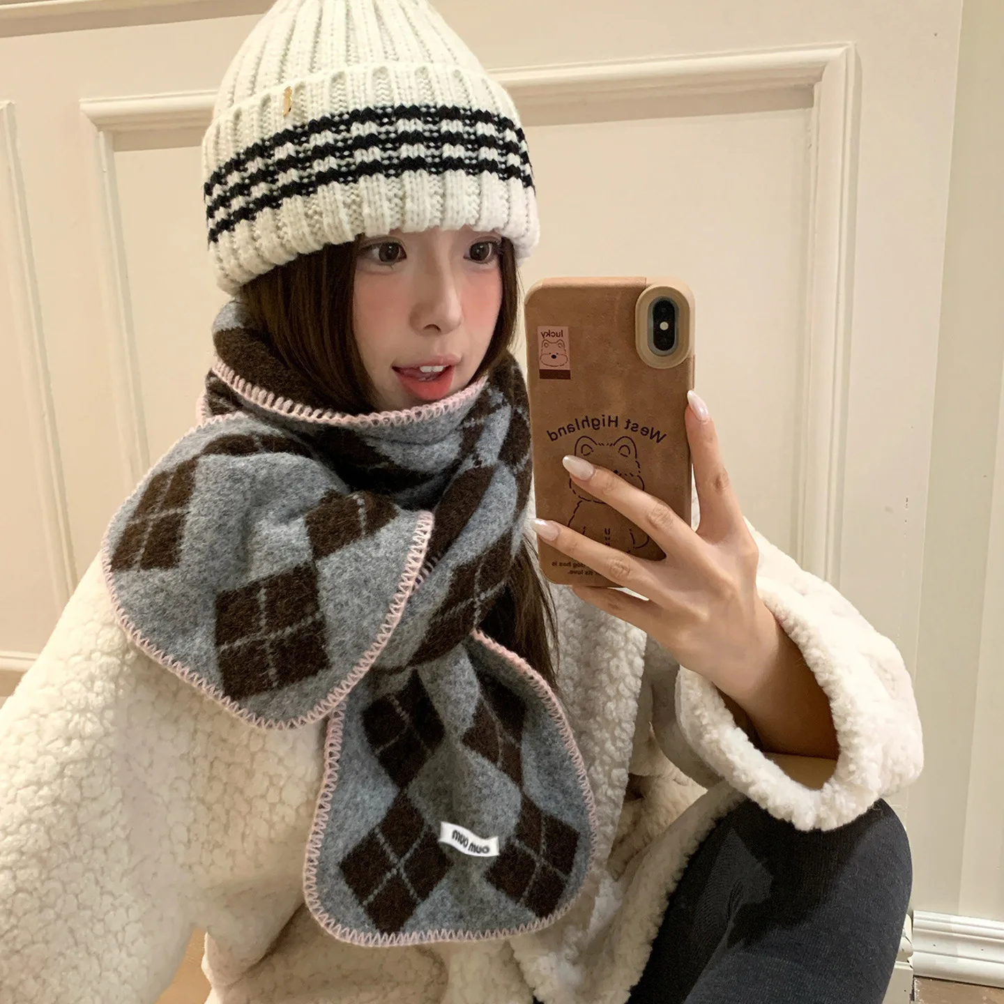 Featuring a sweet and fresh design, this scarf adds a touch of elegance to your winter wardrobe.