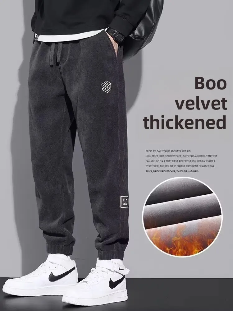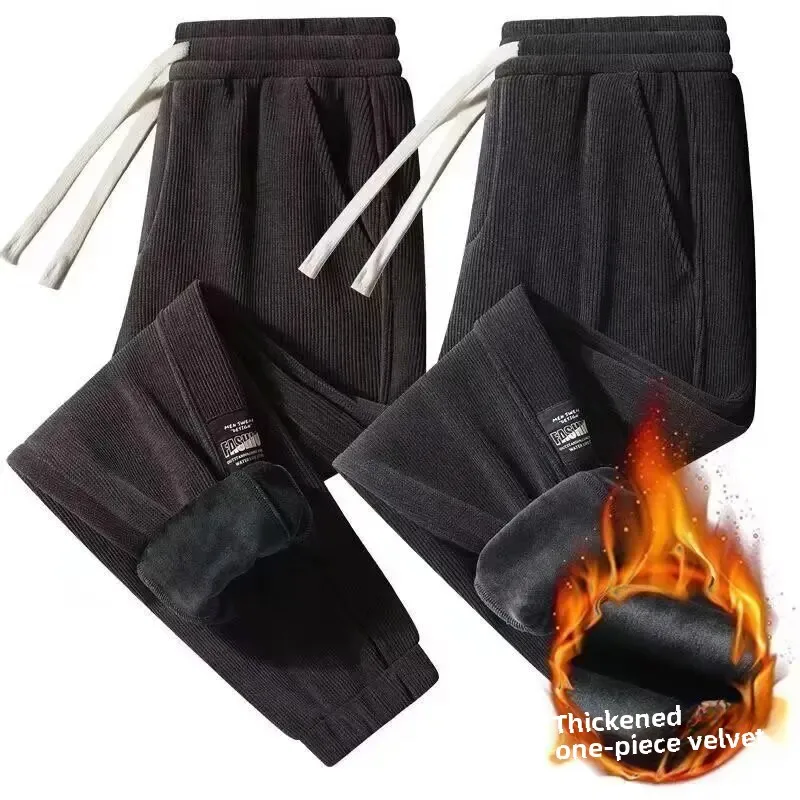 Thickened Men’s Fleece-Lined Pants New Style Double-Sided Velvet Pants Casual Sports Outerwear