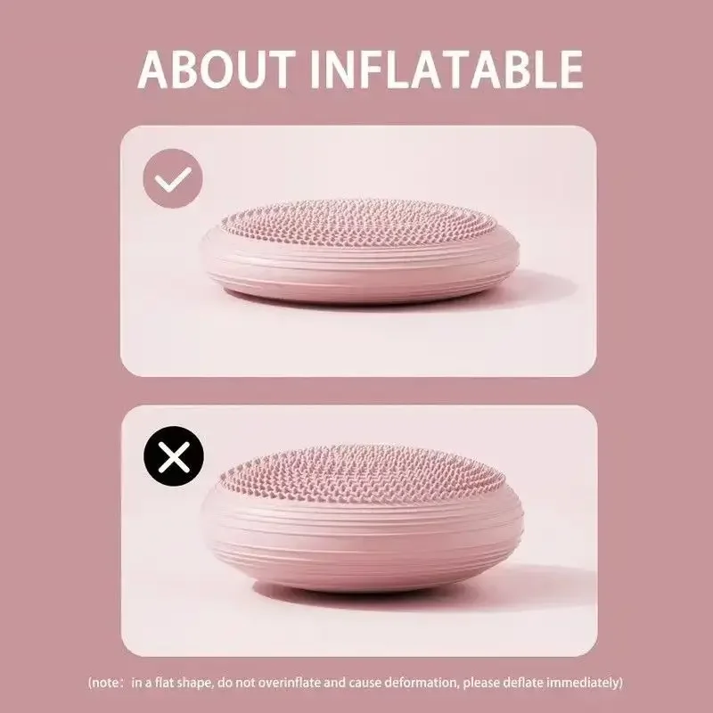• Inflatable Design : The PVC yoga balance mat features an inflatable design, providing a customizable firmness level for optimal comfort during workouts.