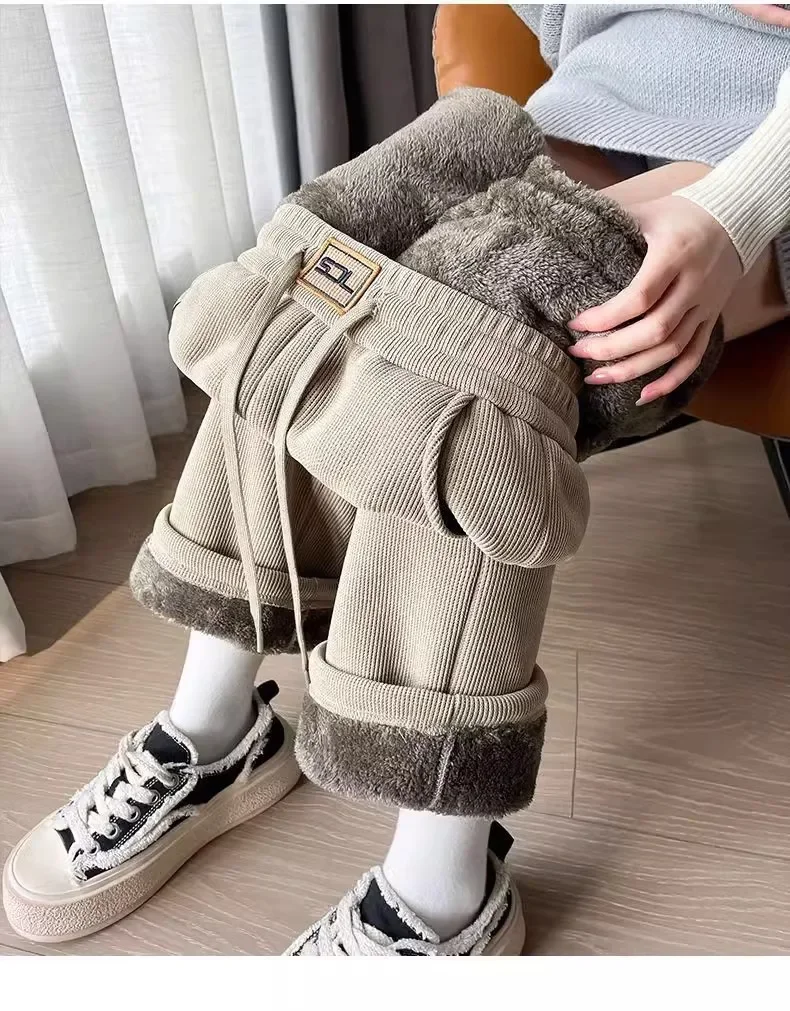• Thickened Slimming Design : The Goddess Fan pants feature a thickened slimming design, crafted from lamb fleece for a cozy yet flattering fit.