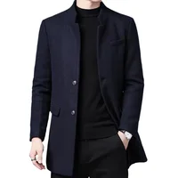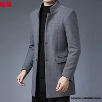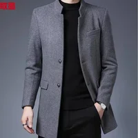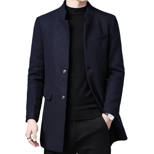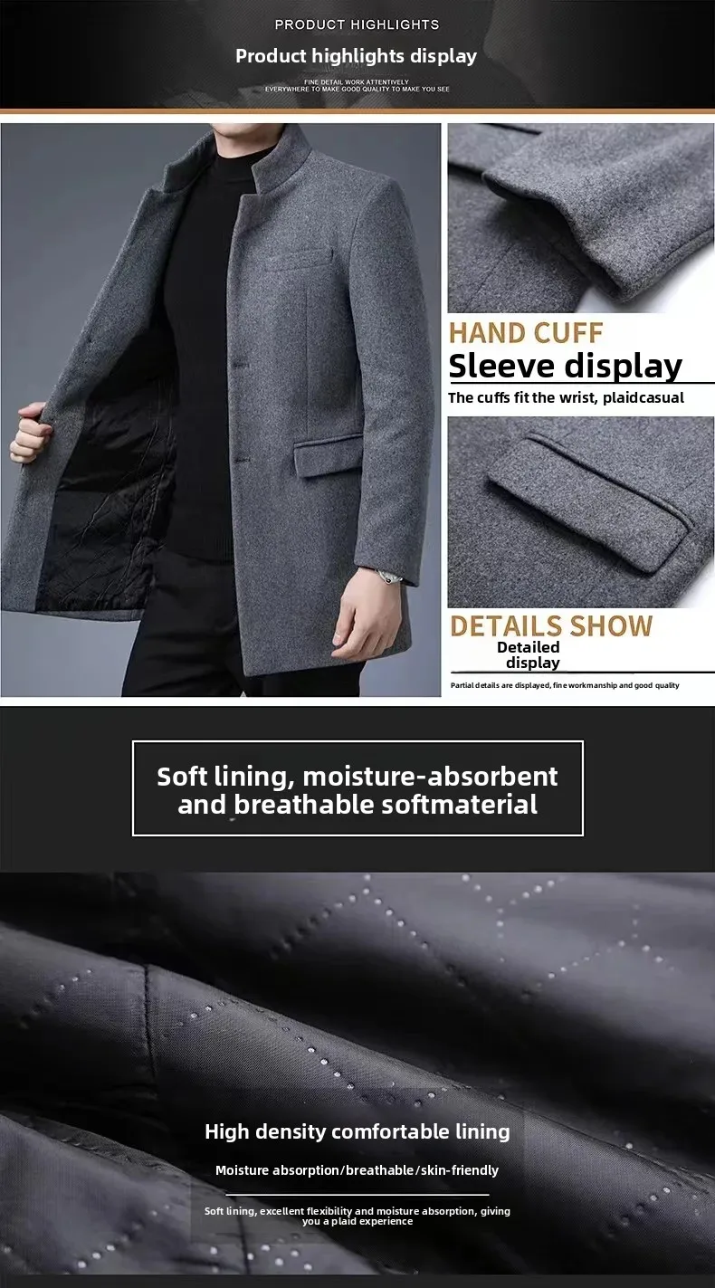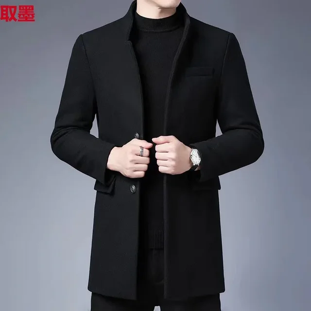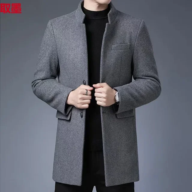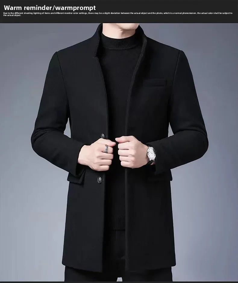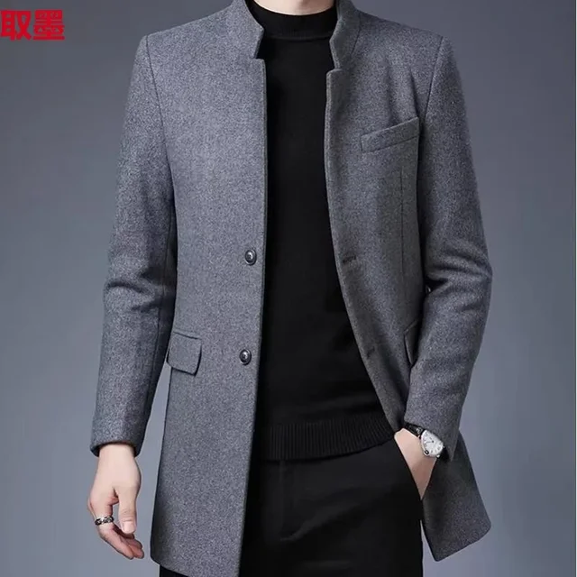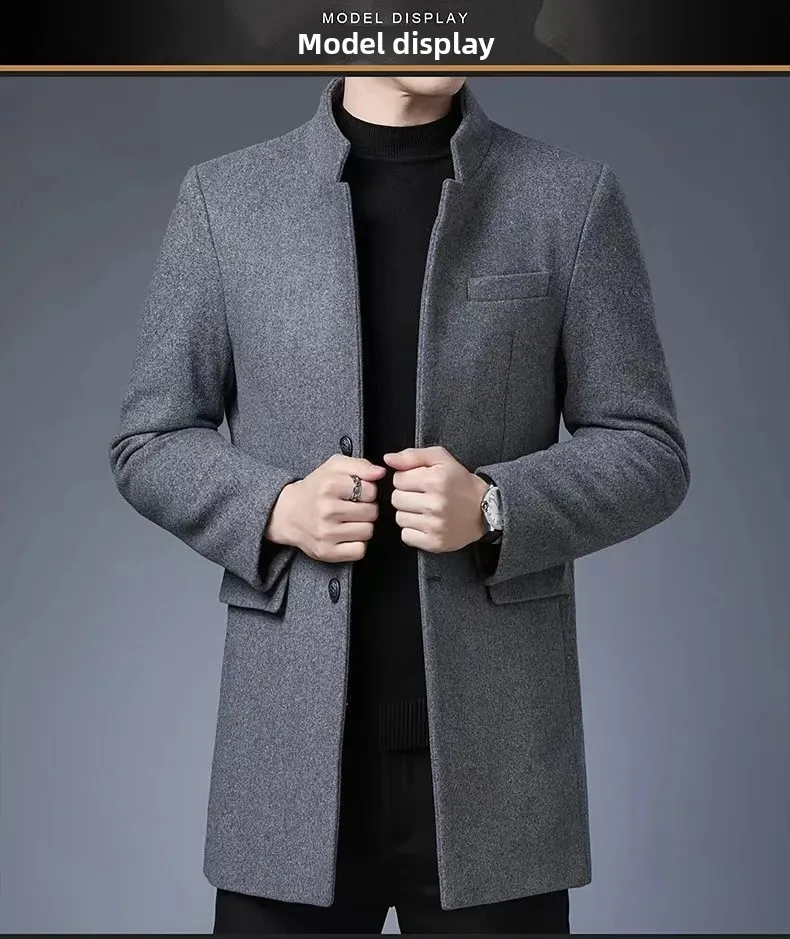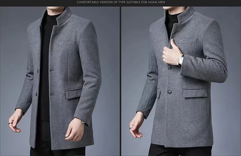 Thickened Woolen Men's Tuxedo Coat with Stand Collar for Wedding Banquet And Marital Ceremony in Winter Casual Loose Fit Windbre