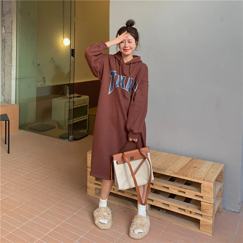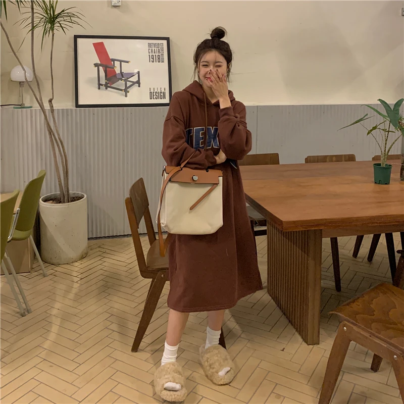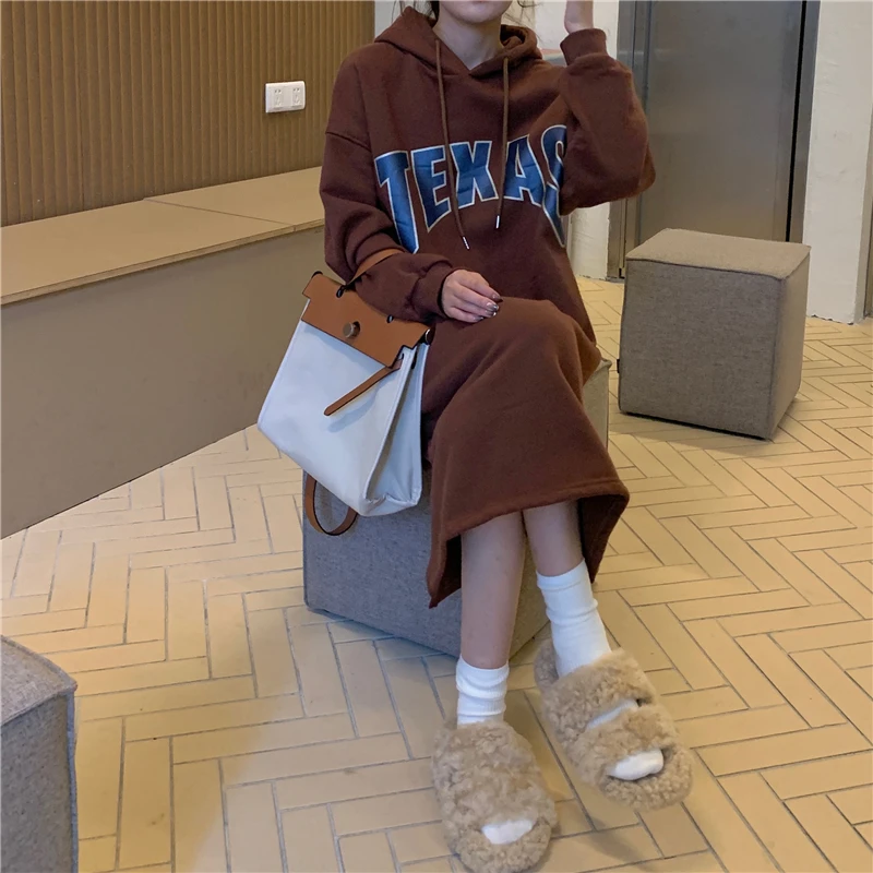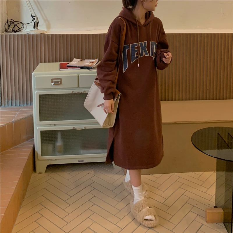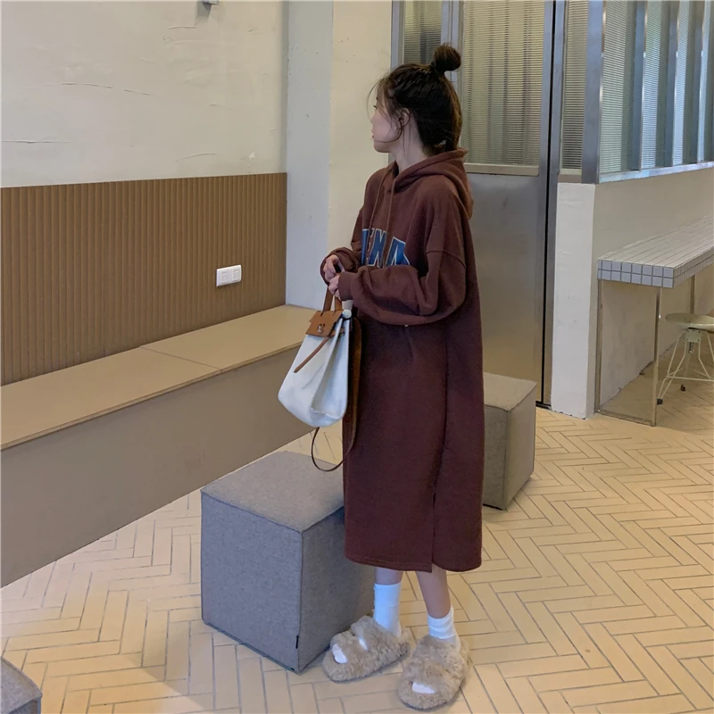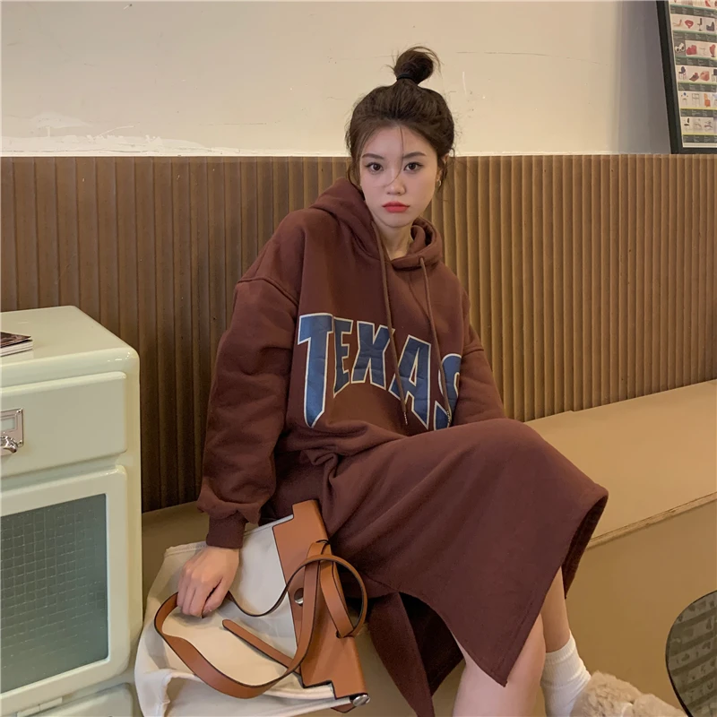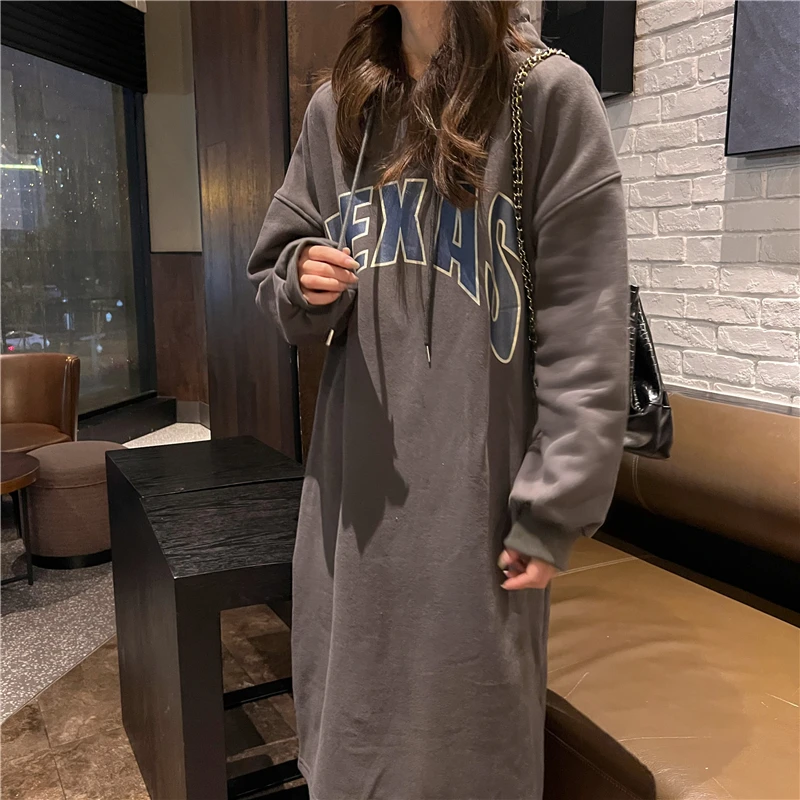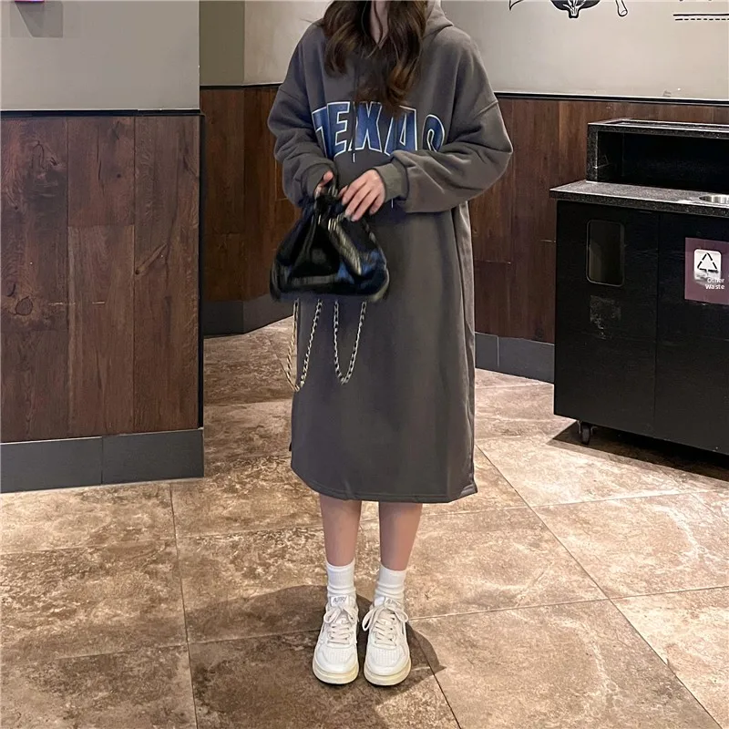 Thiened Fce Sp Dr with Hood Long Over-Knee Home Clothes for Women Winter Season Print Pattern Youth Size