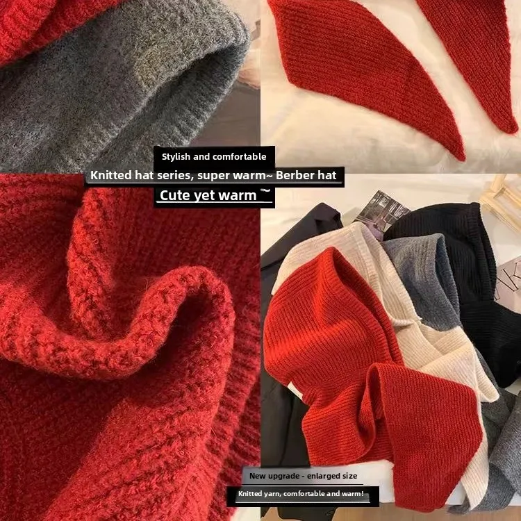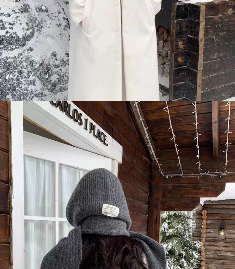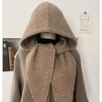 Thiened Knitted Scarf oulder Wrap Hat Inteated Women's Ne Warmer Double Use Autumn Winter New Sle Pure Color Hat