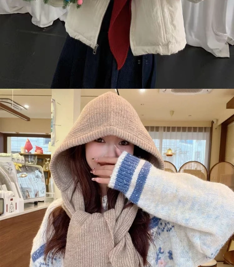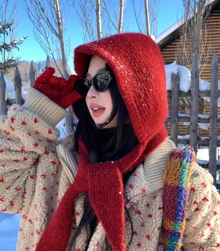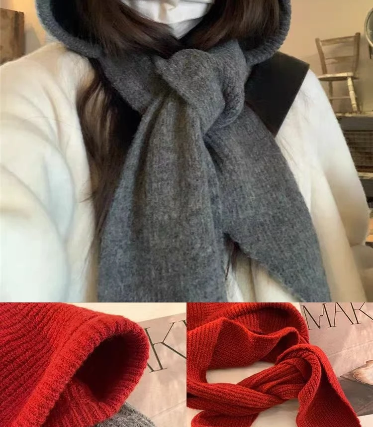 Featuring a unique design with a built-in hood, this scarf can be worn as a scarf or a hat, providing versatility in styling.