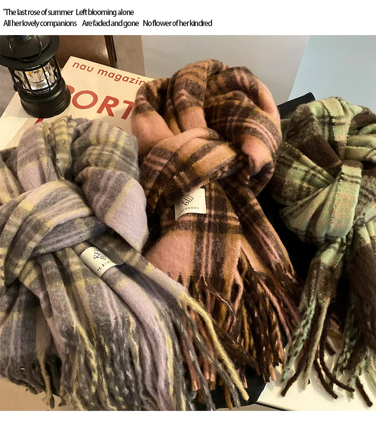The plaid pattern is a timeless design choice, ensuring this scarf remains a fashionable addition to any wardrobe.