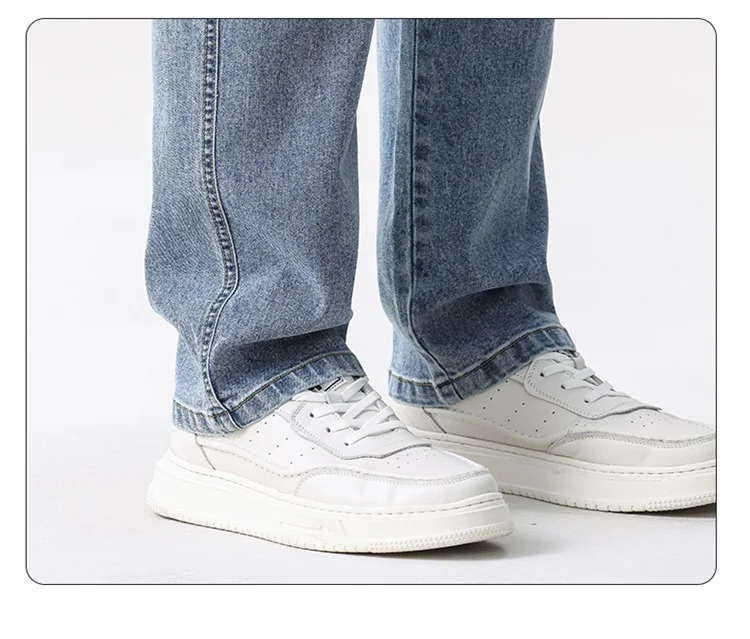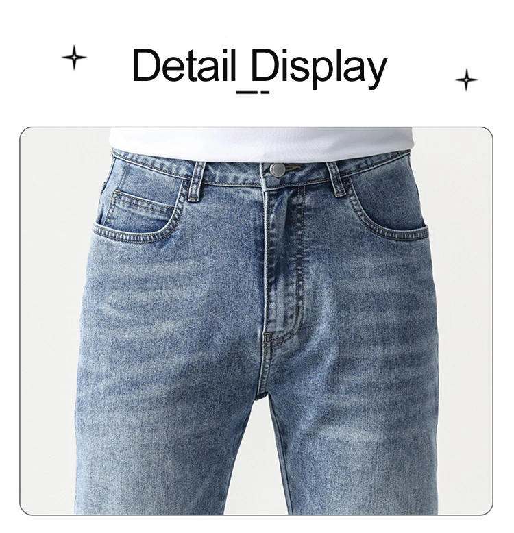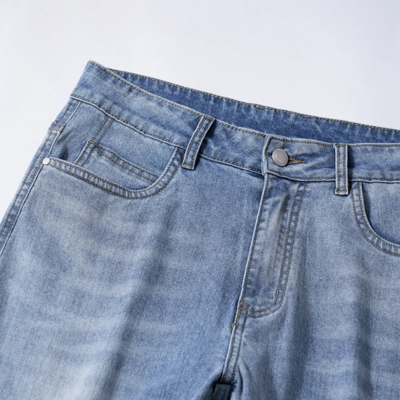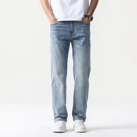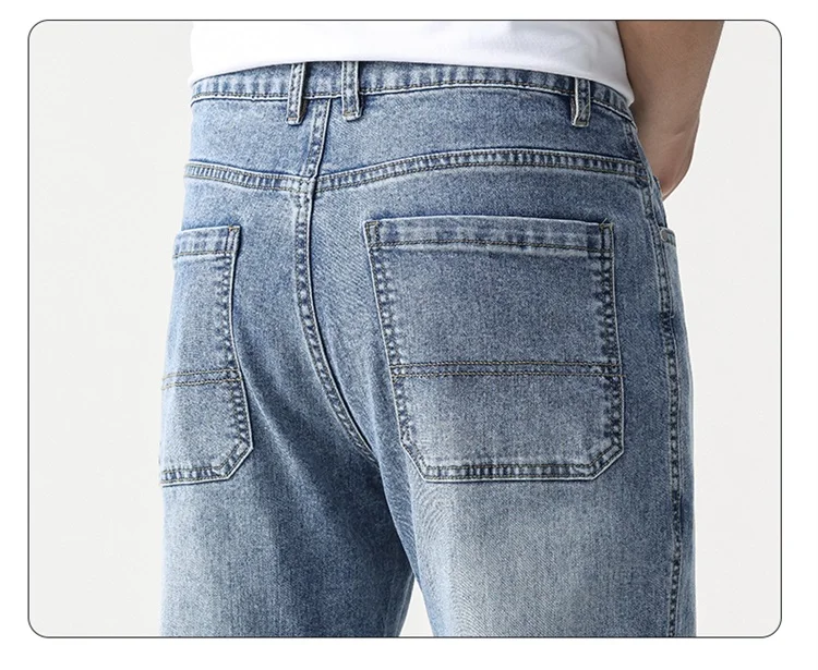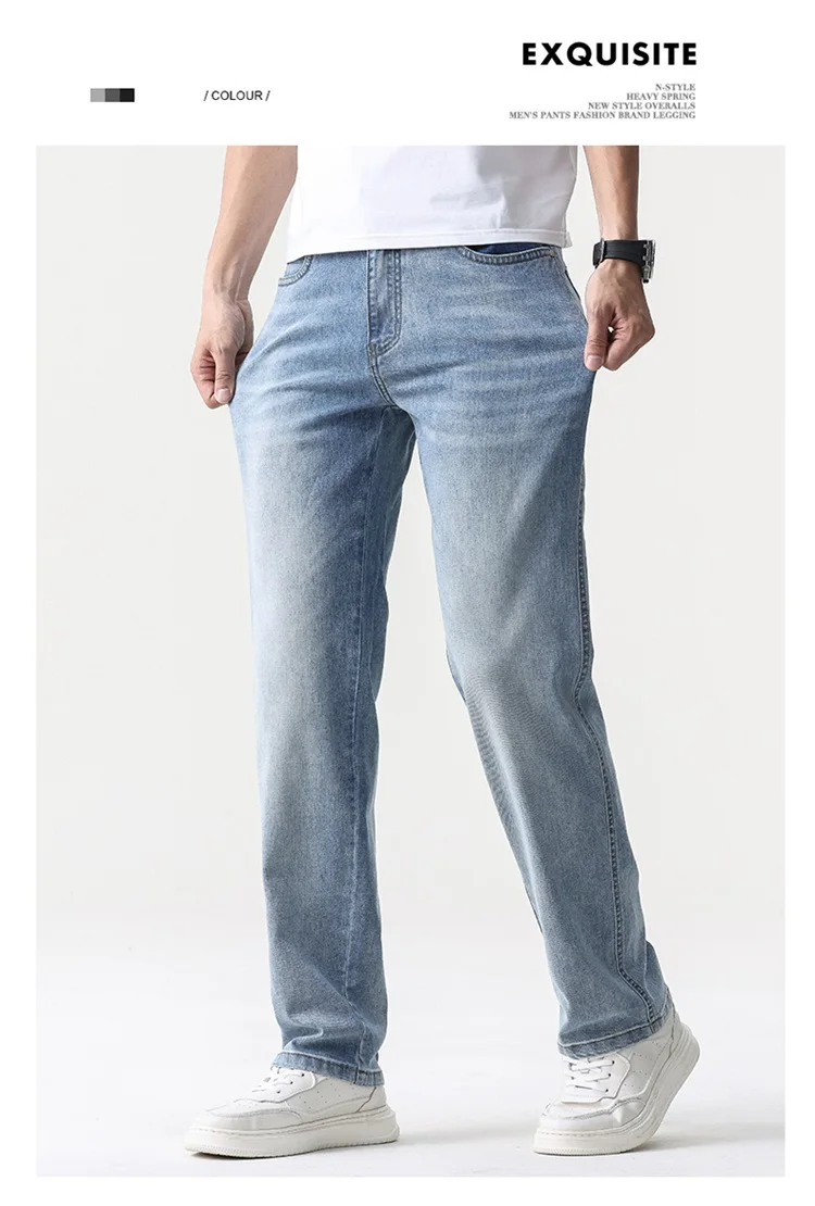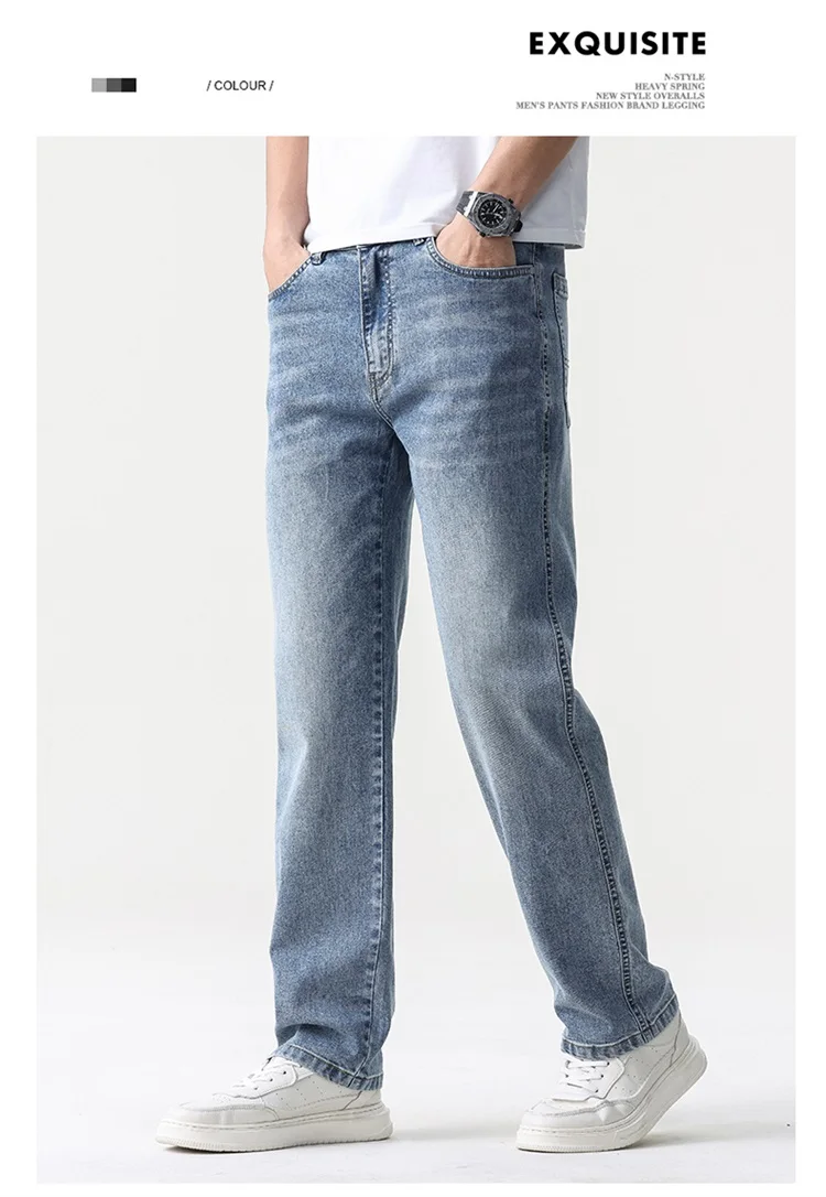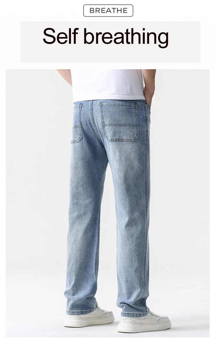thin cool Elastic Men’s Casual regular fit Jeans Loose Straight Wide Leg Pants Washed Denim Trousers