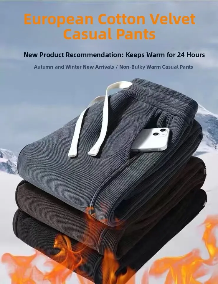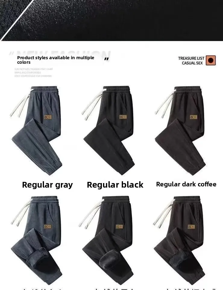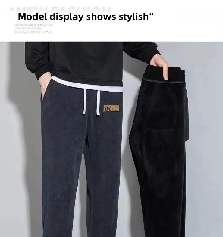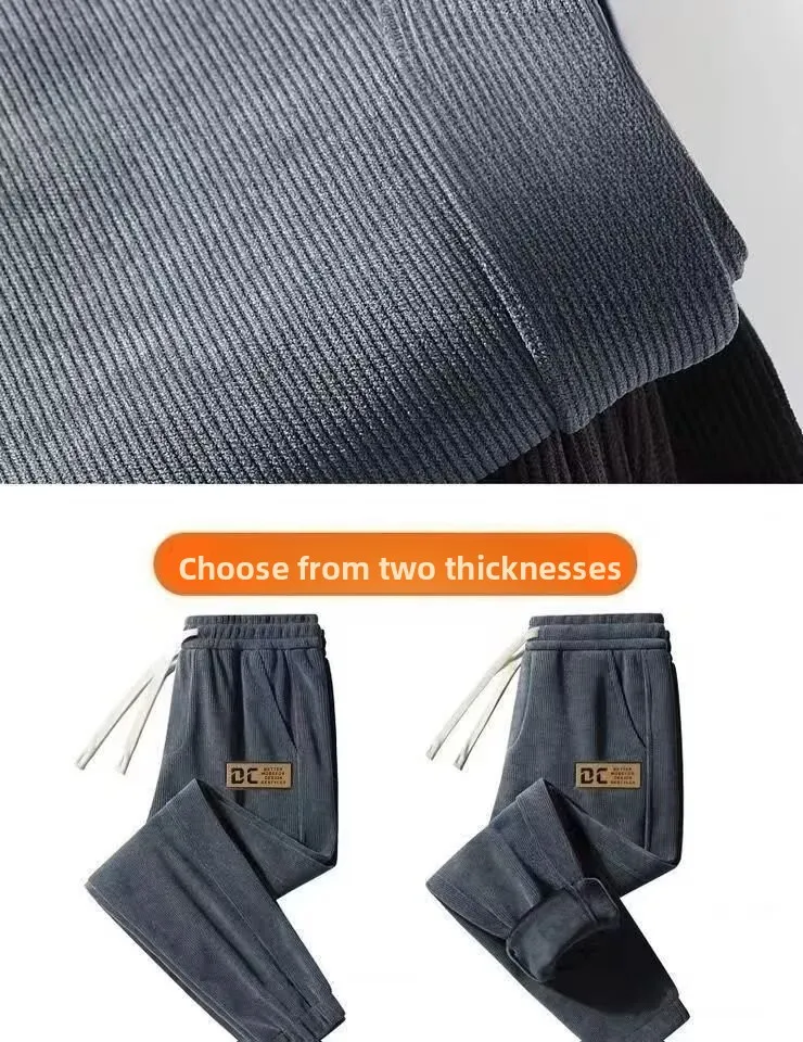 Thin Fleece Lined Corduroy Sports Sweatpants Loose Casual Long Trousers for Men Autumn Spring Seasonal