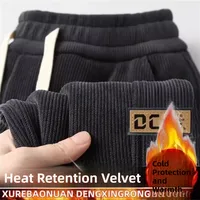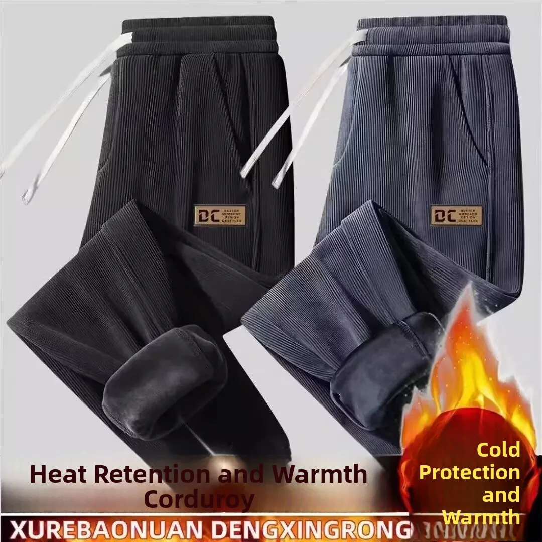 Thin Fleece Lined Corduroy Sports Sweatpants Loose Casual Long Trousers for Men Autumn Spring Seasonal Wear Comfortable Strai...
