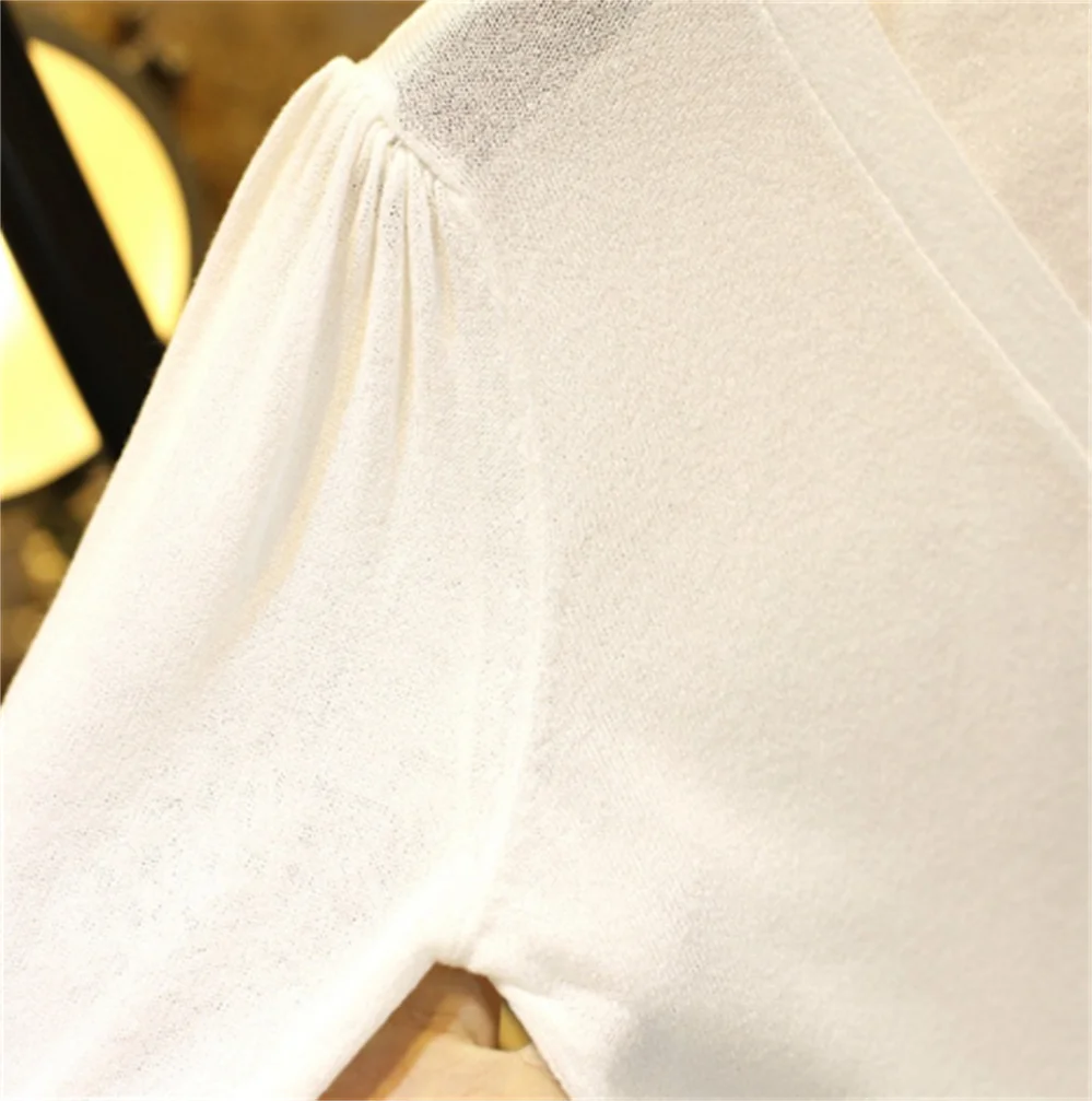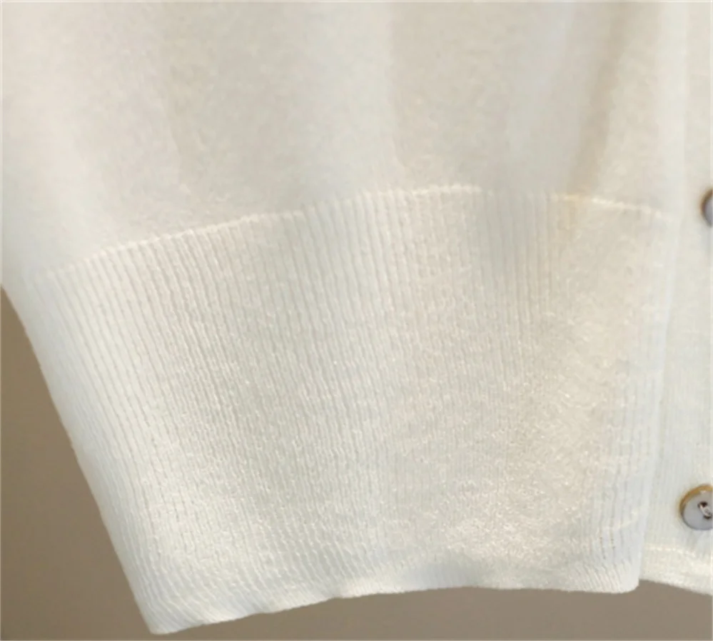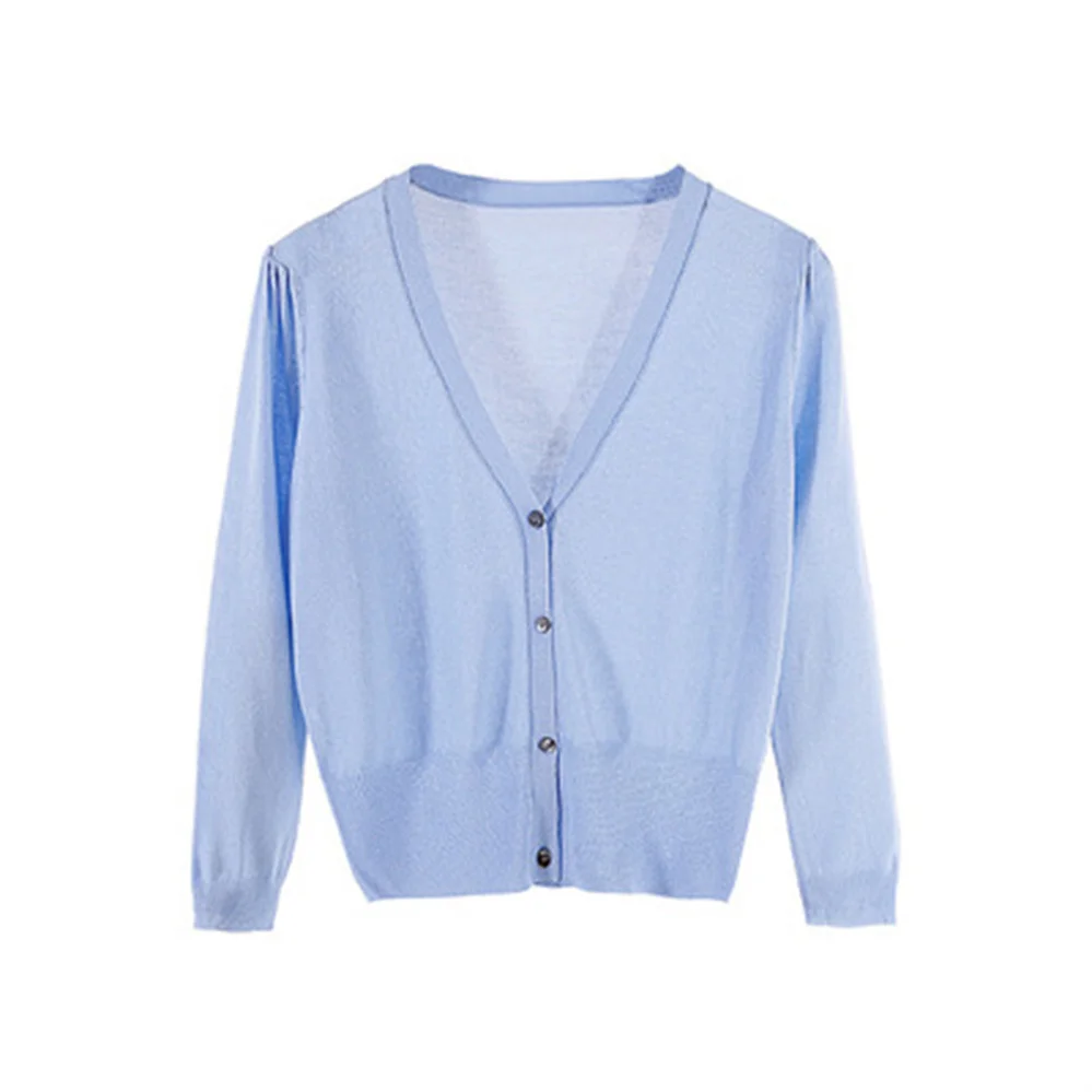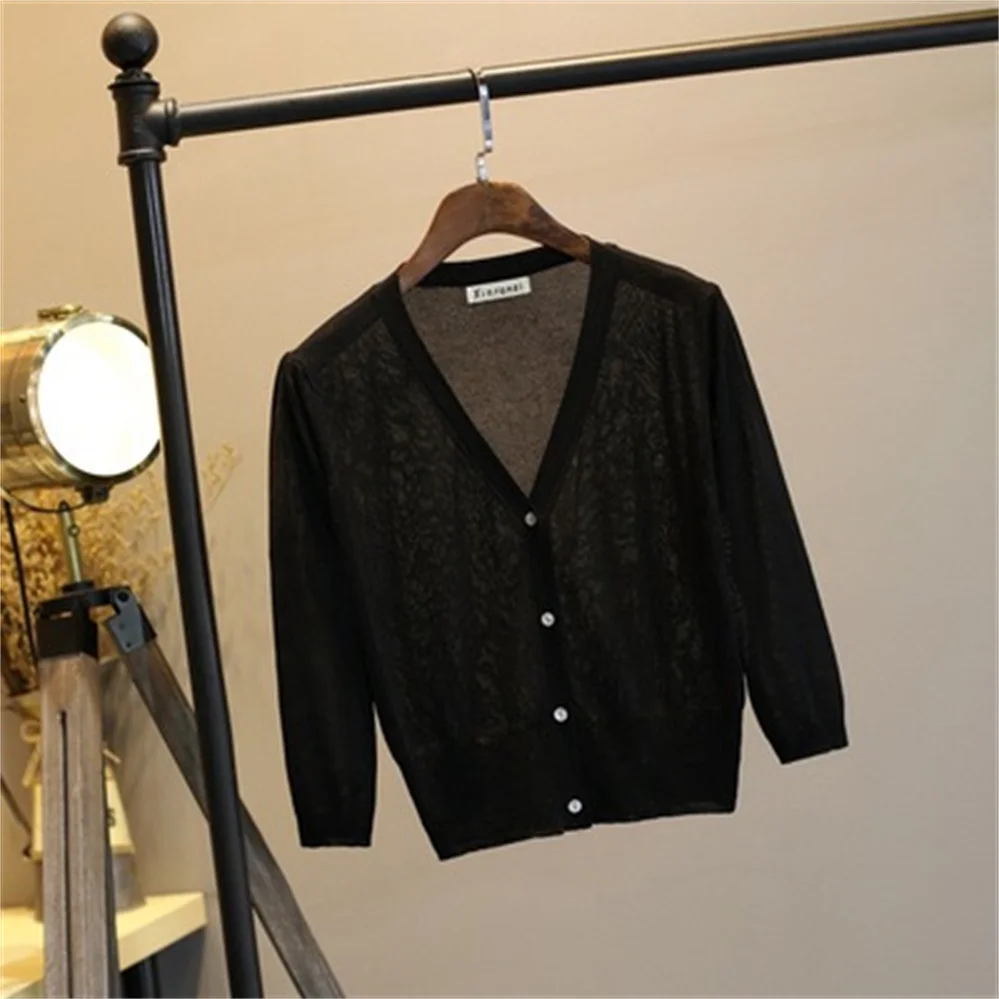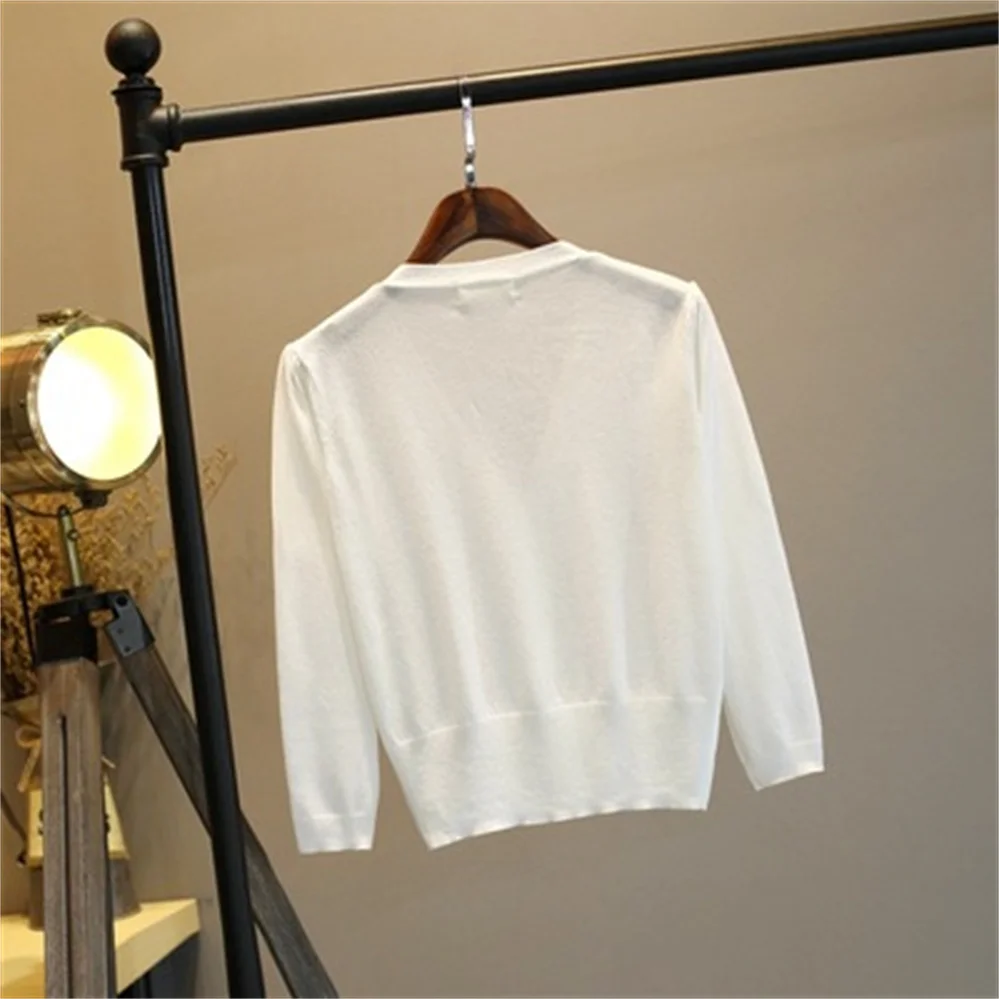 thin Summer candy color knit crop Cardigan women 3/4 Sleeve short knit coat Basic v-neck Jacket outwear Sun protection shirt