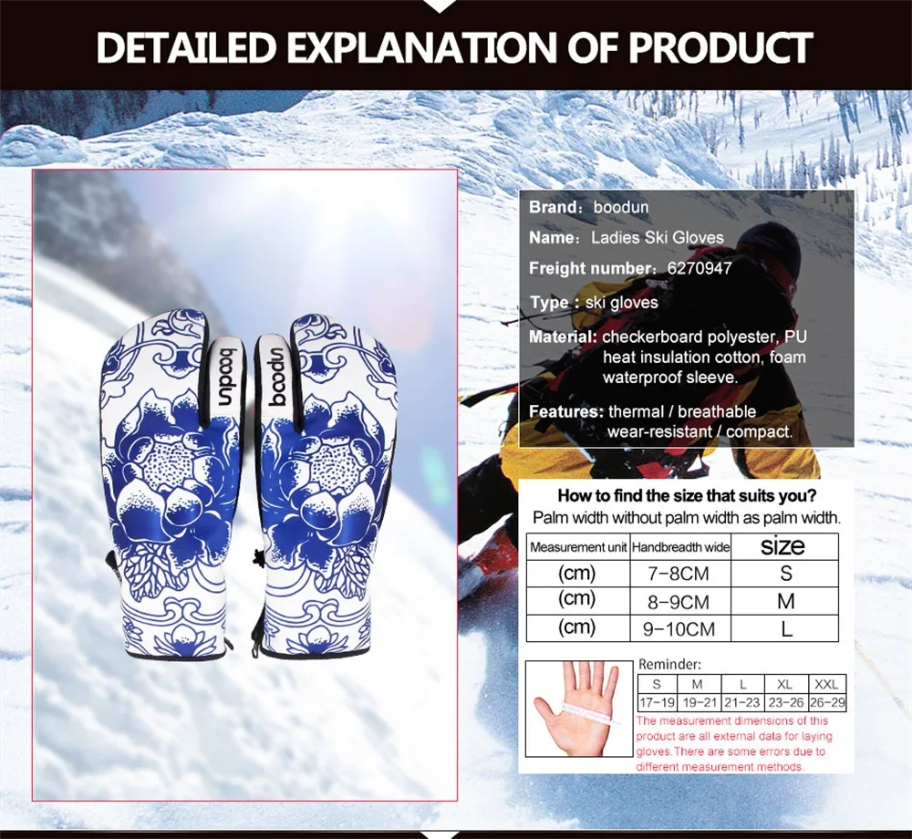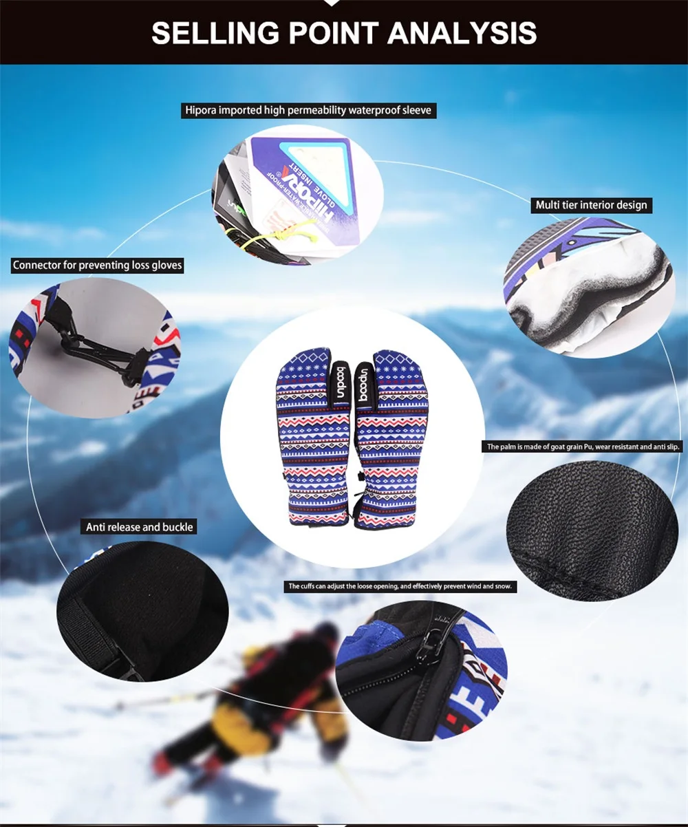 Three finger skiing gloves for both men and women, waterproof, warm, breathable, outdoor windproof sports