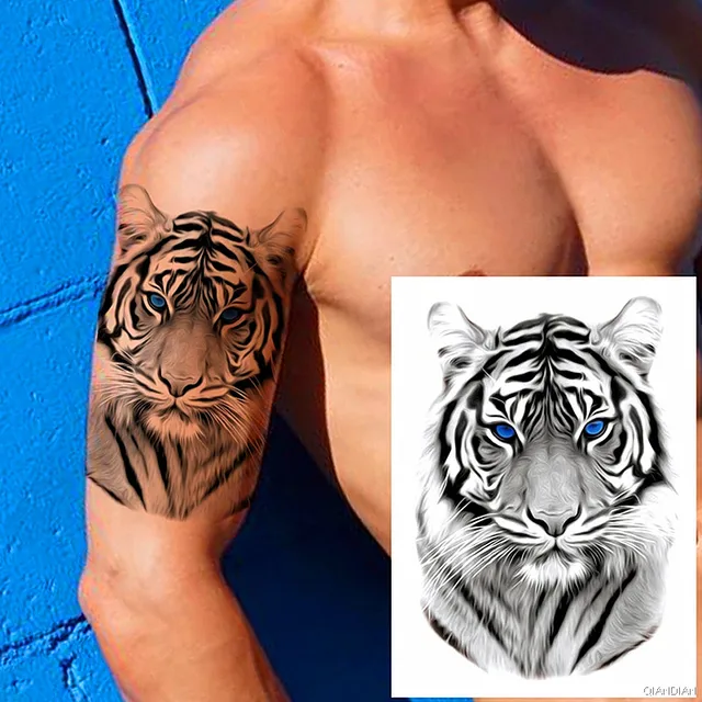 Tiger Lion Man Temporary Tattoos Sticker Waterproof Fox Wolf Fashion Animal Realistic Fake Body Arm Art
