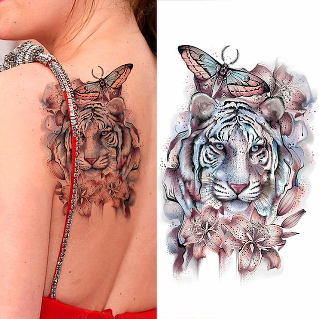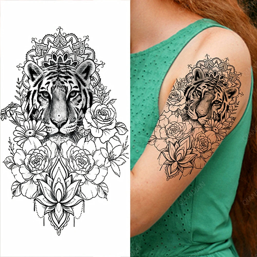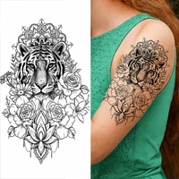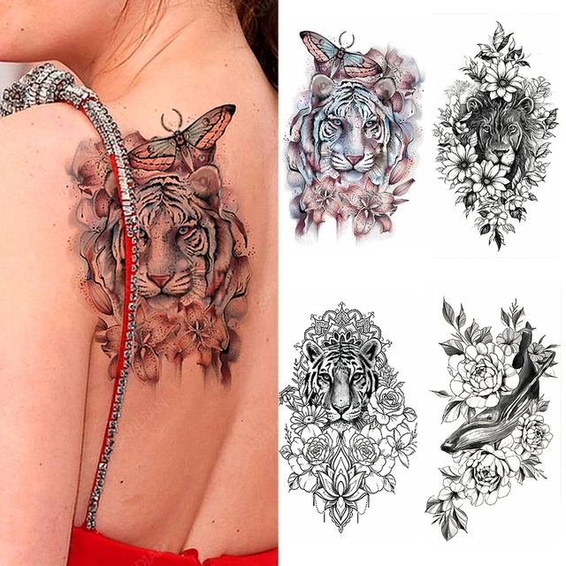 Tiger Temporary Tattoo Flower Lion Rose Wing Wolf Mountain Dolphin Body Chest Leg Waterproof Fashion