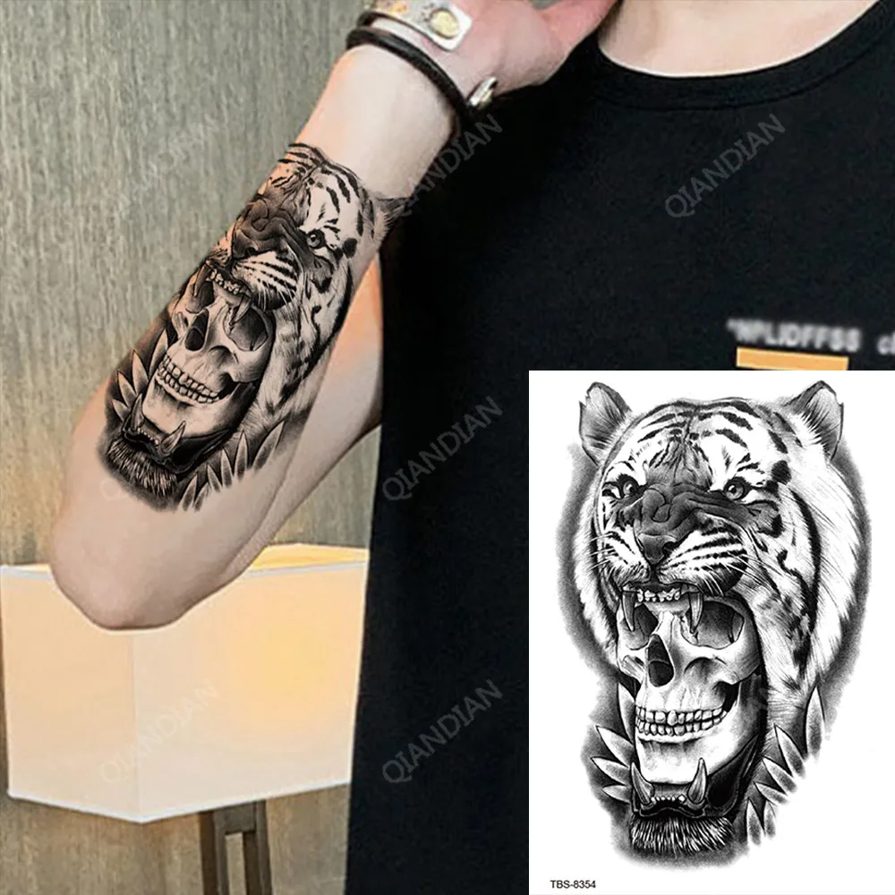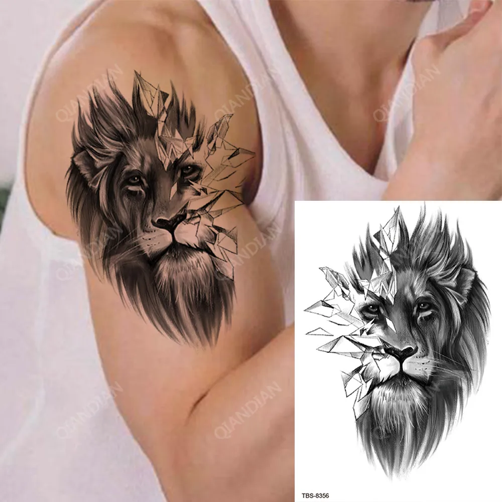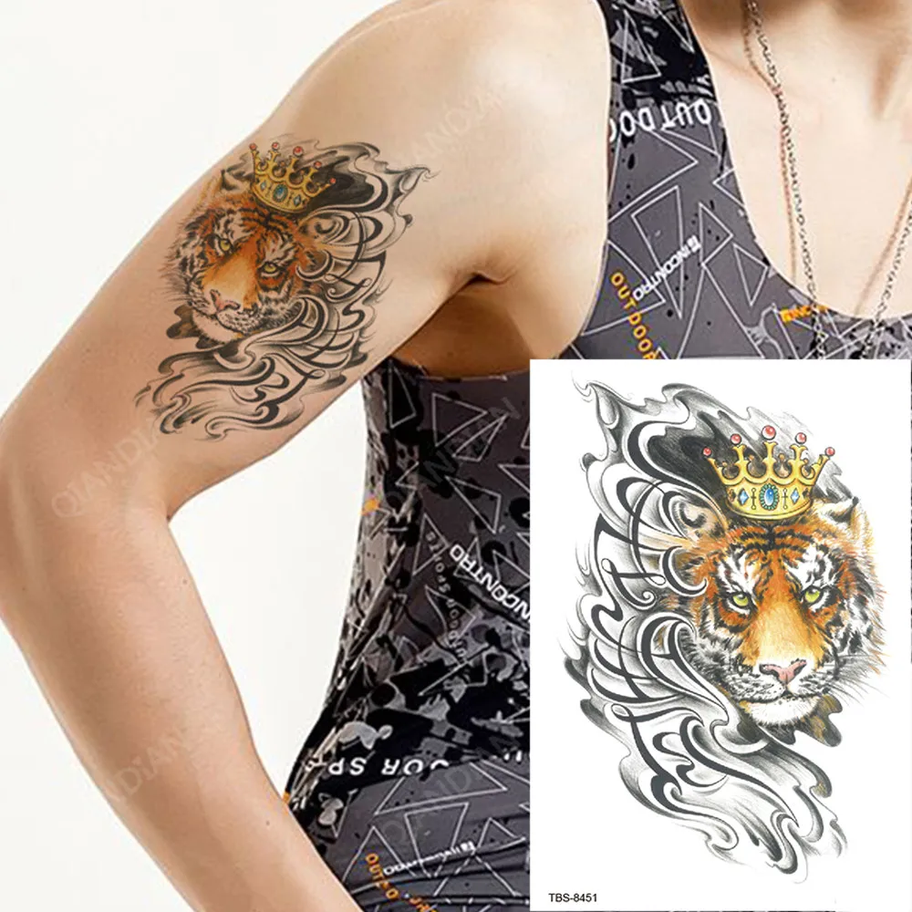 Tiger Waterproof Temporary Tattoo Sticker Lion King Wolf Body Chest Leg Waterproof Fashion Sticker Man Totem