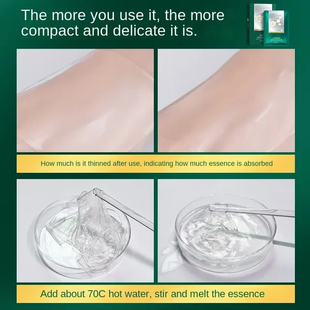 -Mask without paper carrier, put it into water above 70℃ and stir to melt it to reveal the essence.