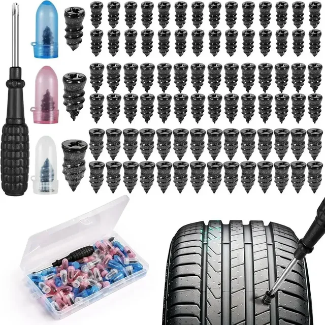 Three sizes of car tire repair kits: 5.3 * 12mm, 6 * 12mm, and 6.8 * 12mm, equipped with installation screwdrivers, are neatly stored in plastic boxes and are suitable for most road emergency tire damage situations.