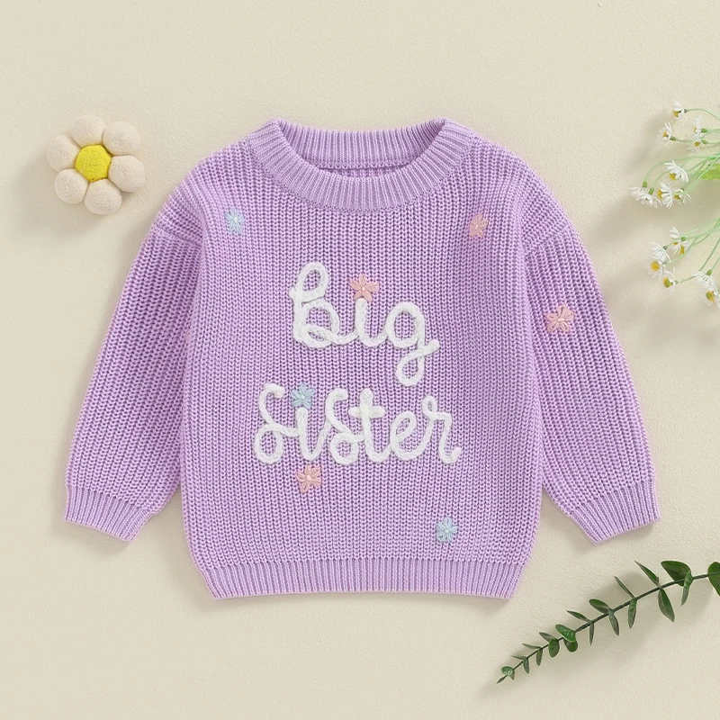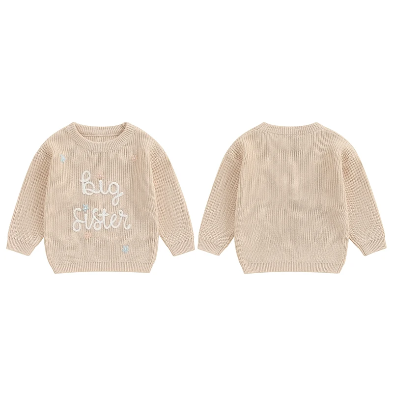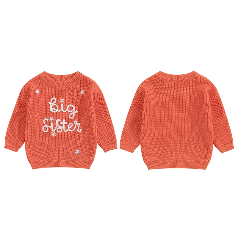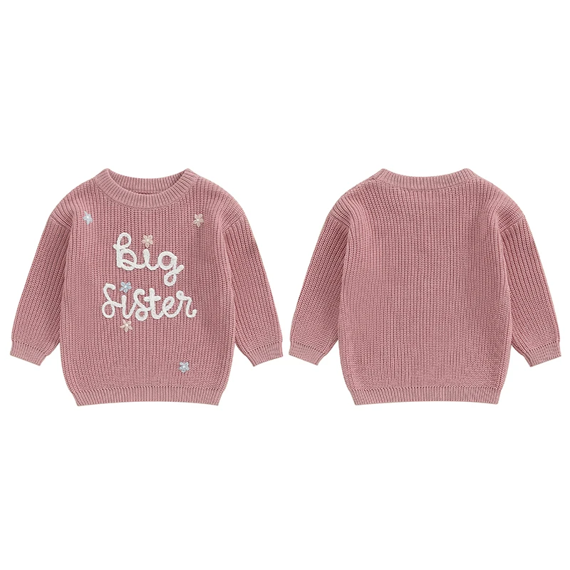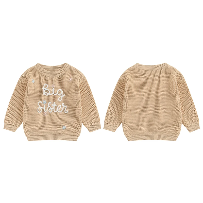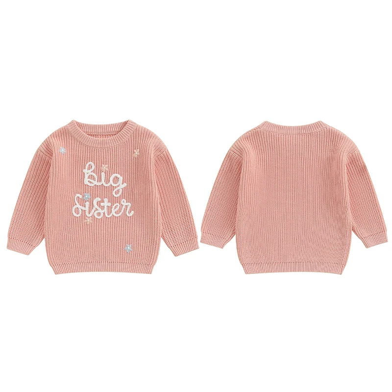 Toddler Baby Girl Boy Knitted Sweater Big Sister Pullover Sweatshirt Chunky Sweaters Sister Matching Outfit