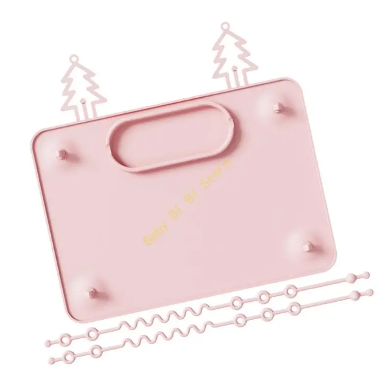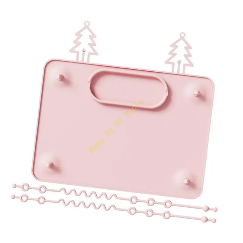 Toddler Silicone Placemat Suction Cup Design For Secure Meals Dishwasher Safe Portable Feeding Mat With Teether Rope 11UC