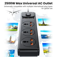 Supports a max output of 2500W and is compatible with common international standard plugs: