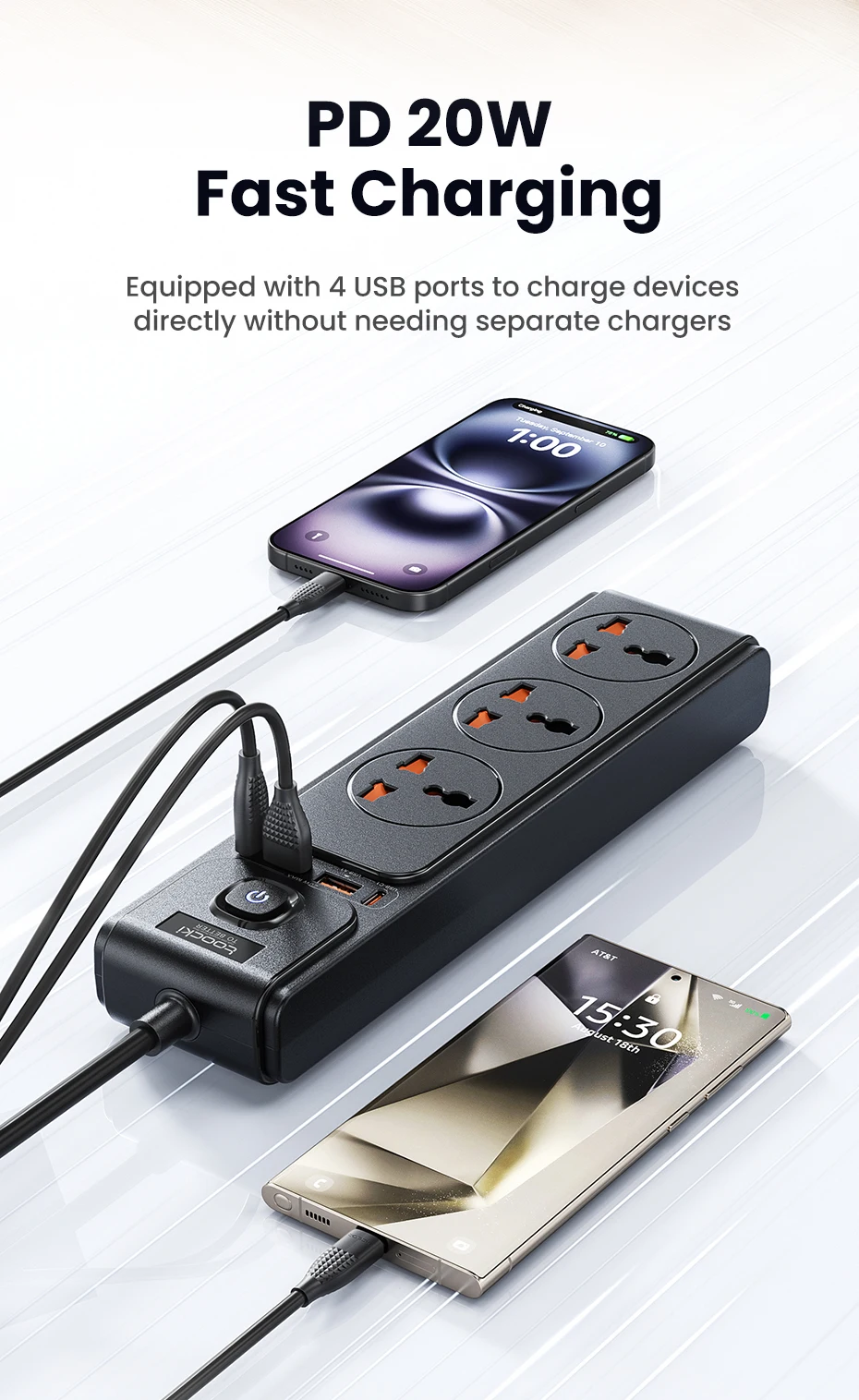 ,4 USB ports eliminate the need for additional chargers, supporting simultaneous charging of smartphones, tablets, headphones, and more.