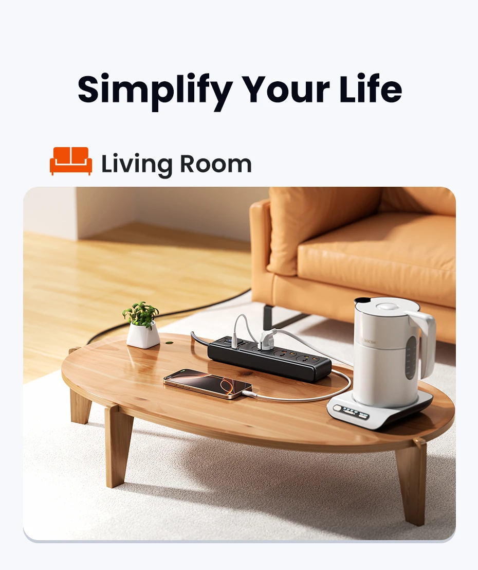 ✅Non-slip silicone pads: Keep the power strip stable without slipping, fitting tightly on tabletops.