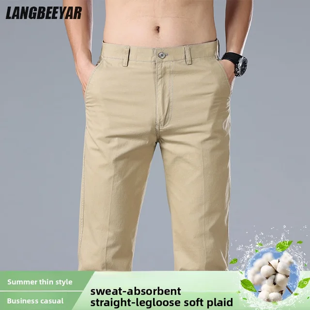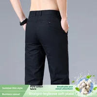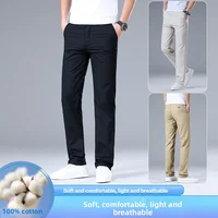 Top Grade Wool+ Silk New Brand Casual Fashion Relax Fit Straight Business Long Pants Trousers Office Mens Clothing 2025
