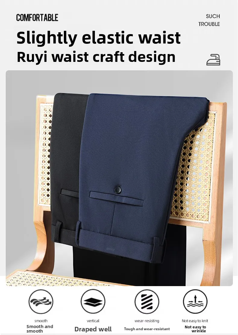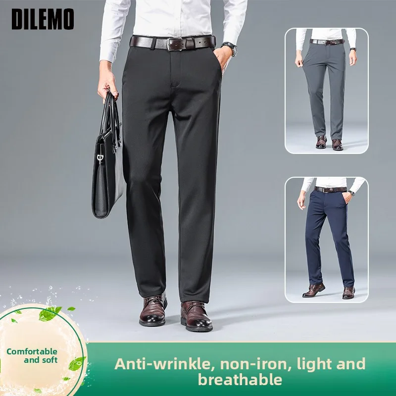 2023 Spring and Autumn Fashion Korean Edition Casual Business High Waist Button Slim Fit Straight Tube Non Iron Men's Suit Pants
