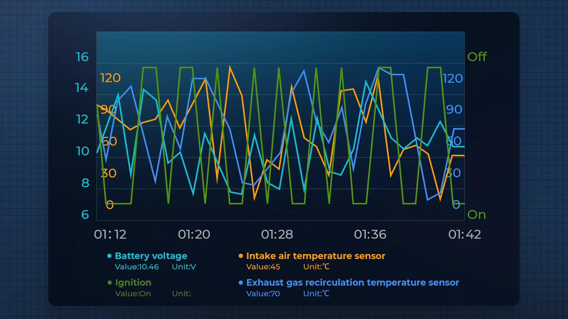 Display data streams in the form of text, graph or a dashboard-like chart. This helps users to intuitively observe data changes over time. Use the “Combine” function to graphically display up to 4 data streams in a single interface, allows the users to evaluate performance with comparative data to make accurate and efficient decisions.