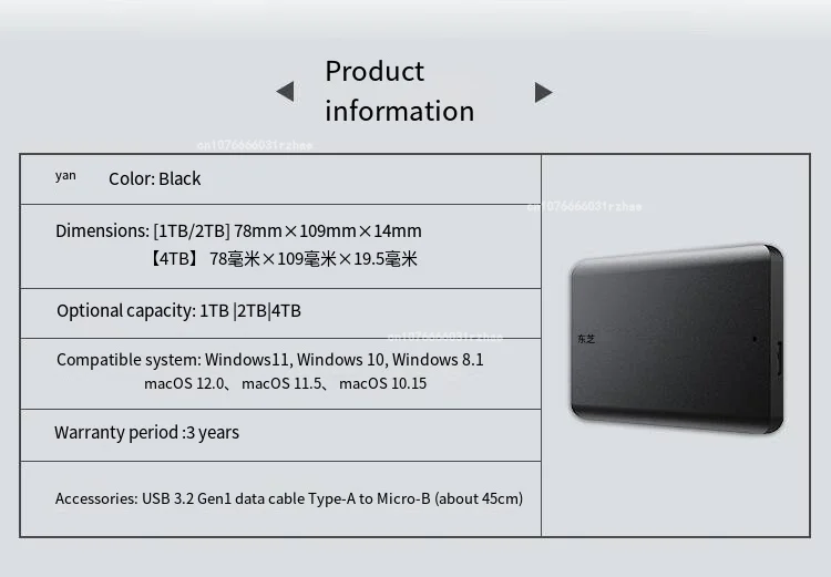 Toshiba portable hard drive 4TB/1TB/2TB Canvio Basics USB 3.2 external data storage capacity Mac laptop