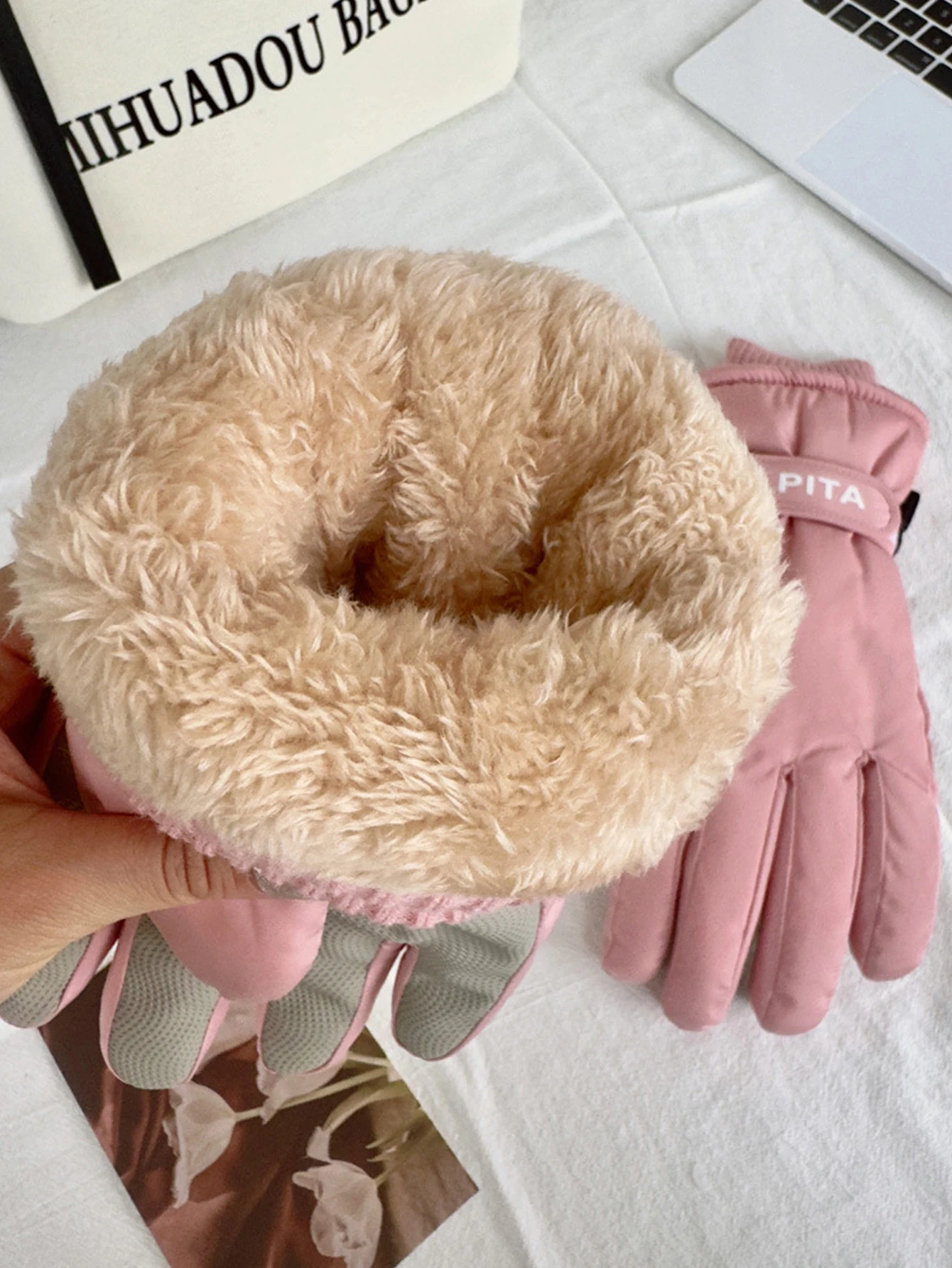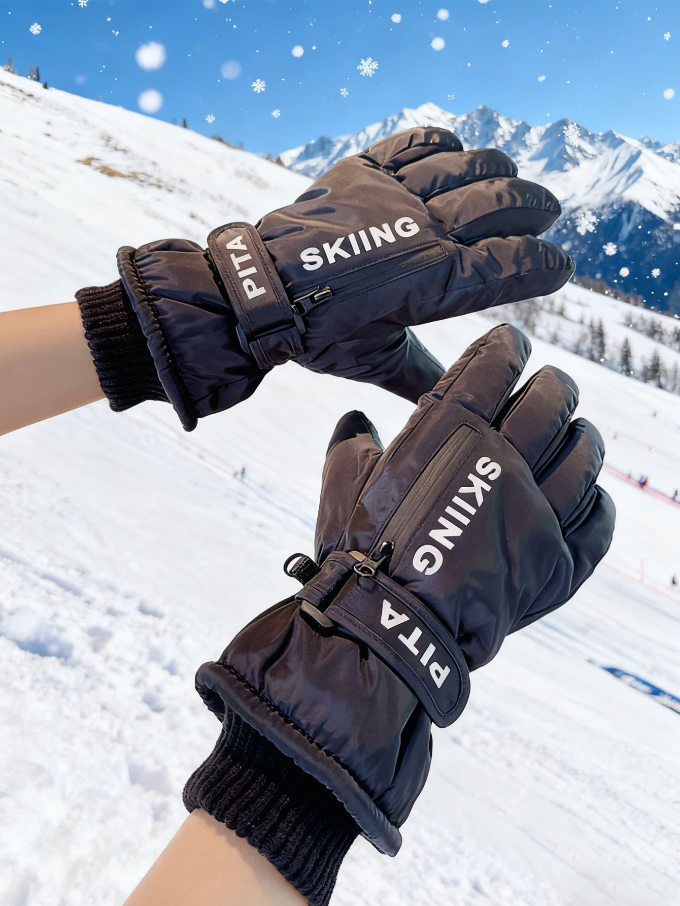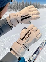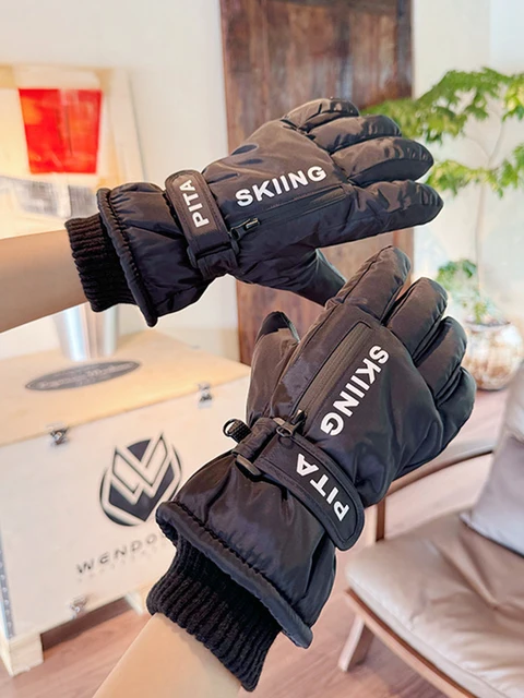 Touchscreen-compatible ski gloves with pockets, featuring a fleece lining for extra warmth and a zippered card slot. these winter gloves are perfect for keeping your hands warm, protected from wind and water, and are ideal for winter cycling or riding an electric scooter. suitable for both men and women