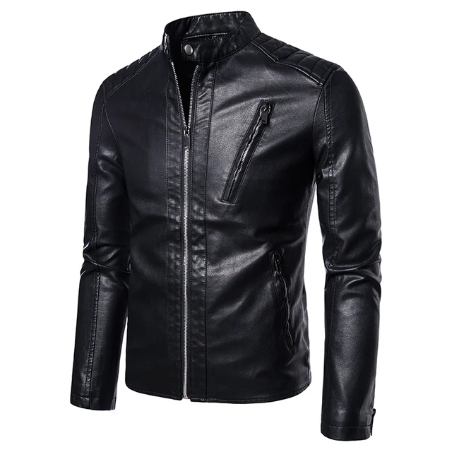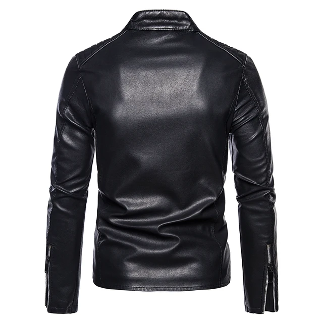 TRAF Men’s Casual Fashion Trend Solid Color Versatile Pu Leather Jacket Large Size Multifunctional