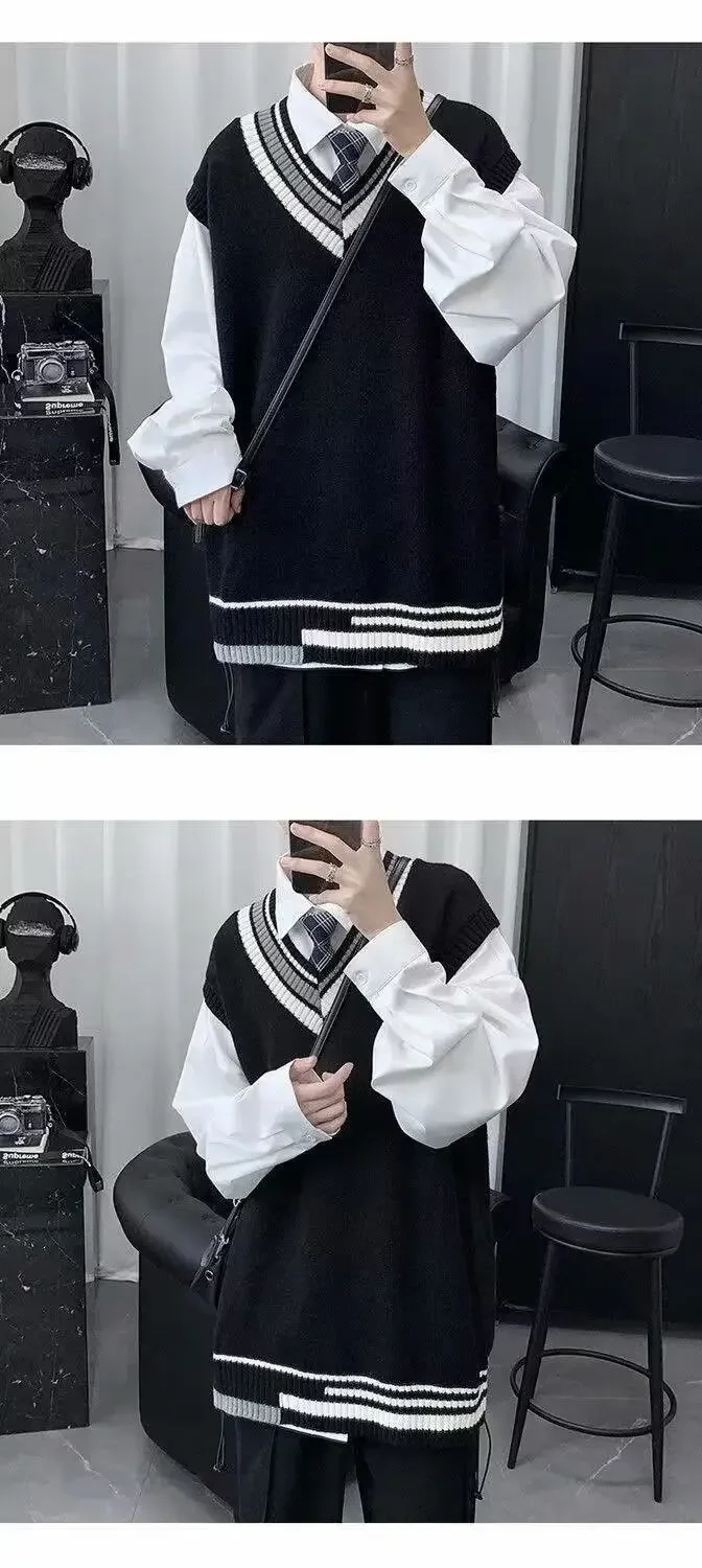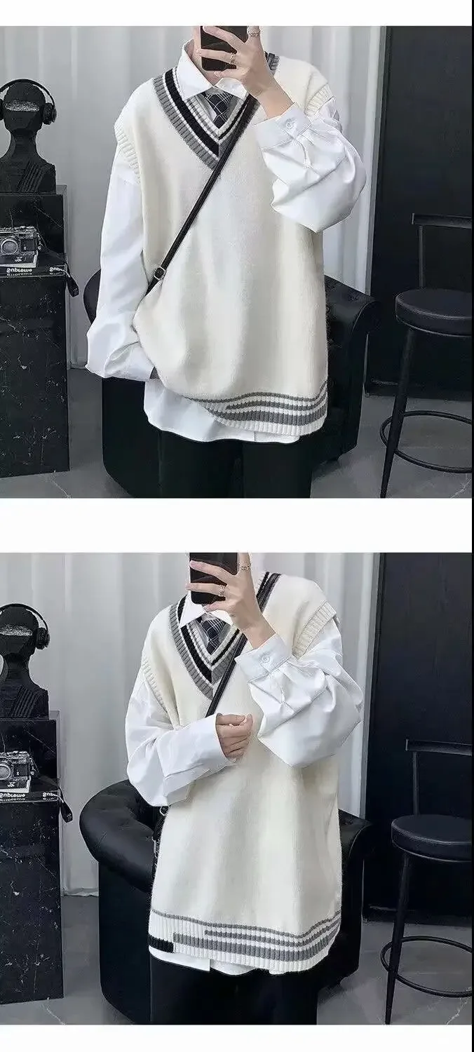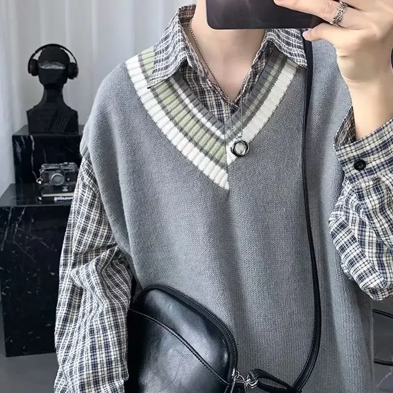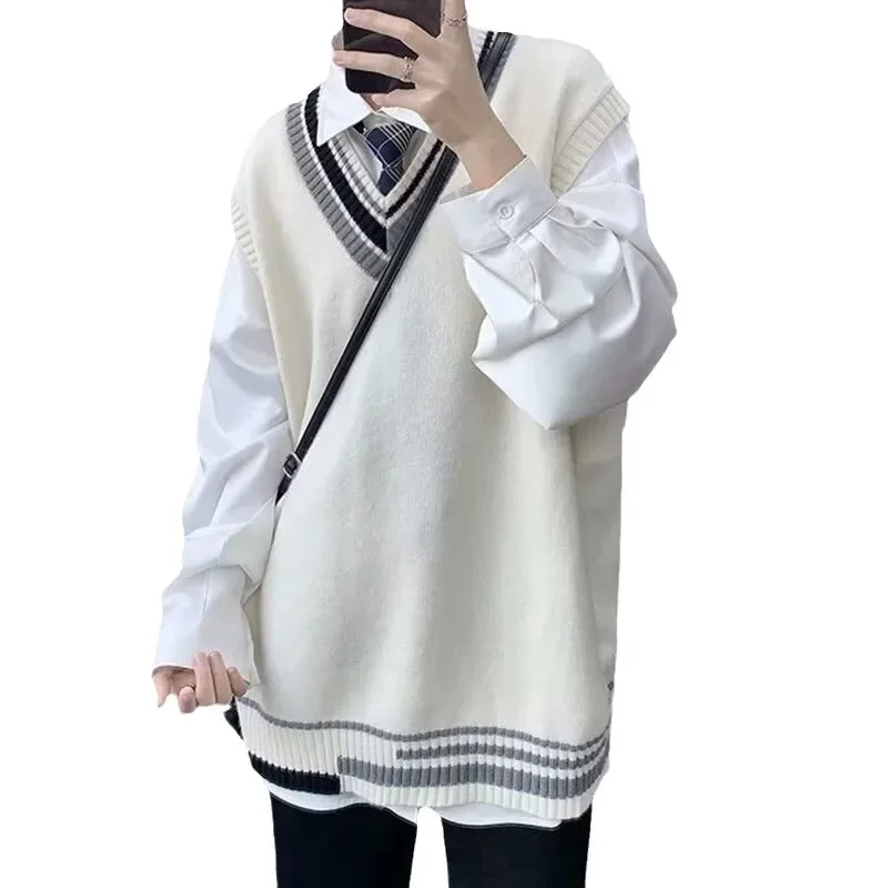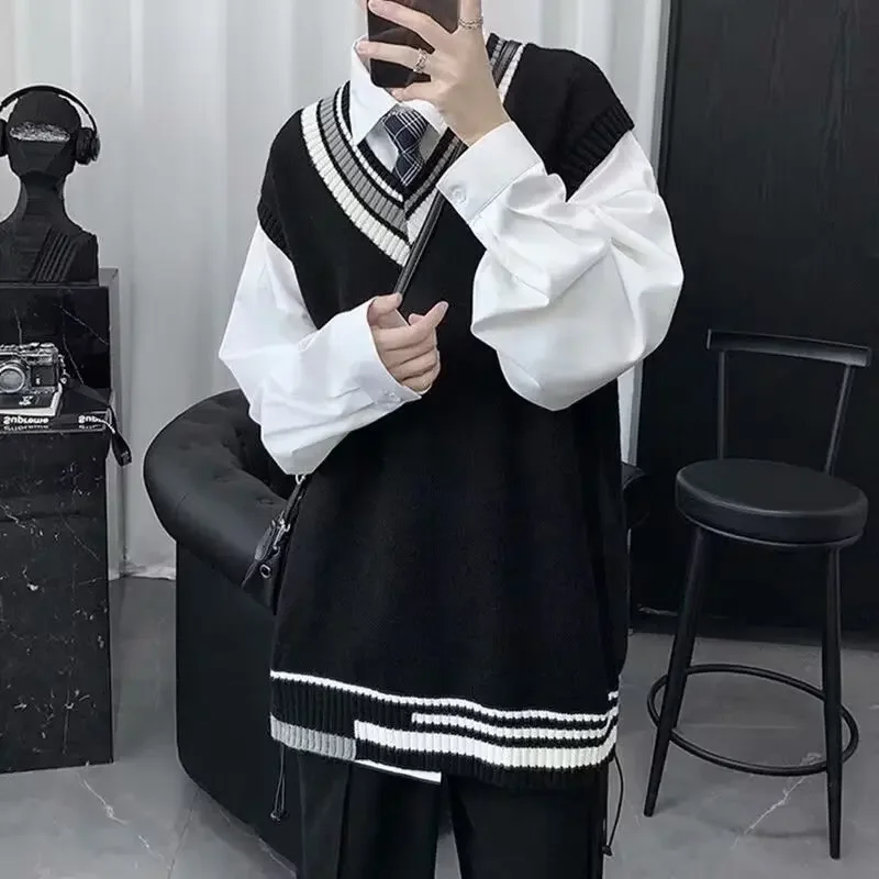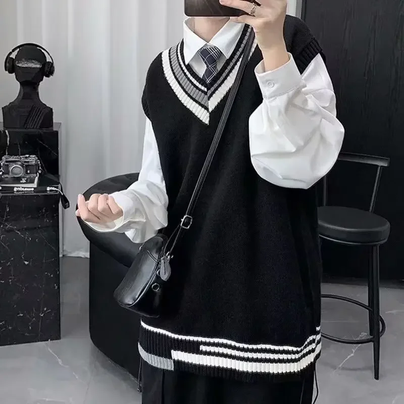 Trendy Autumn Winter Couple Sweater For Men Loose Fit Round Neck Knit Base Layer Top Casual Scene Korean