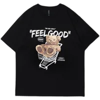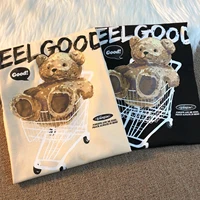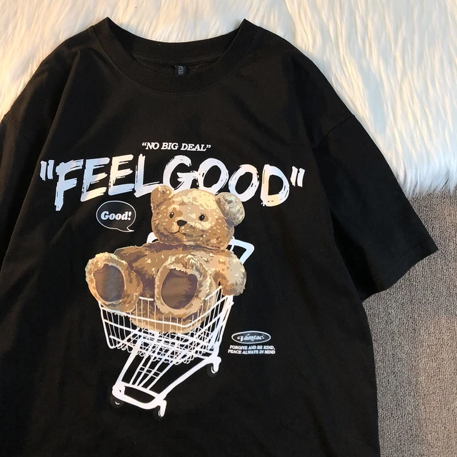 Trendy Bear Print ort Sve Loose Fit Women’s T-irt Summer Vintage High Street Hip Hop Student f