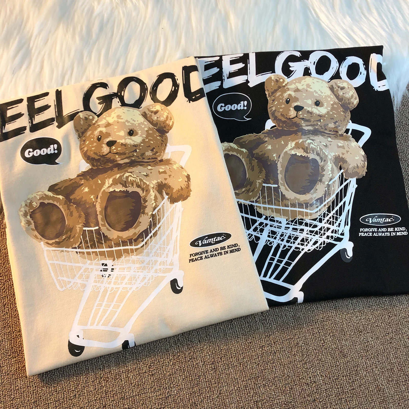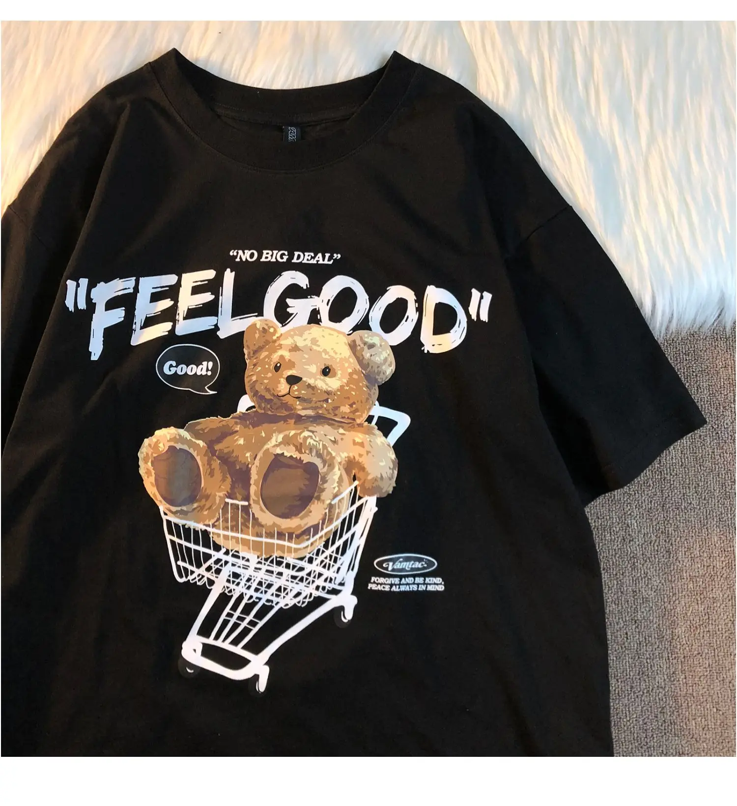 Be the first to review “Trendy Bear Print ort Sve Loose Fit Women’s T-irt Summer Vintage High Street Hip Hop Student f”