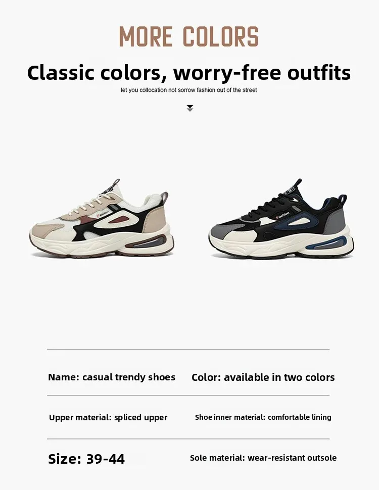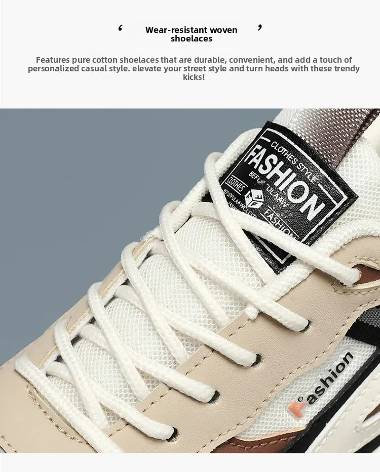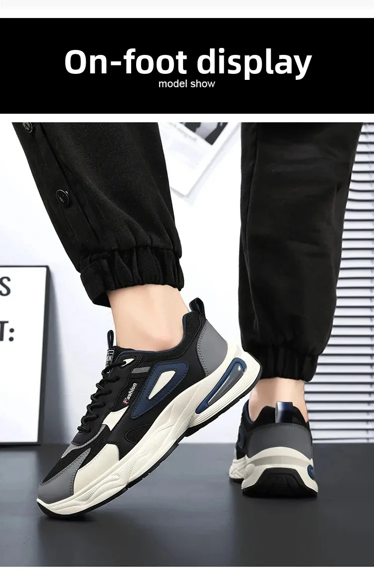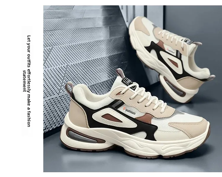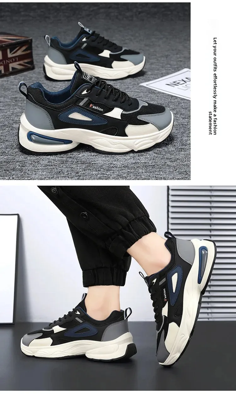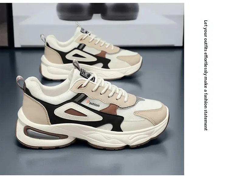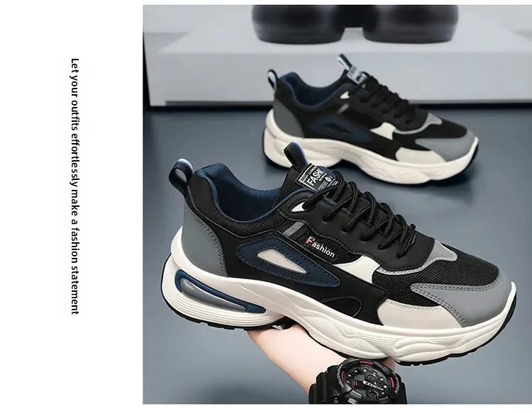 • Breathable Mesh Upper : The Trendy New Mesh Breathable All-match Thick-soled Korean Men’s Shoes feature a breathable mesh upper, ensuring your feet stay cool and dry during spring breaks.